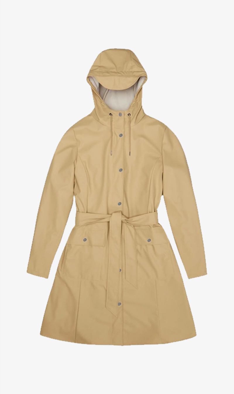 The Curve Jacket is Rains’ interpretation of the women’s Trench coat. The minimal design delivers a figure-flattering silhouette, with its subtle A-line fit and waist belt. Curve Jacket features a drawstring hood with cap brim, main zip closure with snap fastened placket, adjustable cuffs, and a fishtail hem. The look is completed with two front patch pockets. This waterproof jacket is cut from Rains’ signature PU fabric and features ultrasonically welded seams. The finish is lightweight with a soft feel and elegant drape.