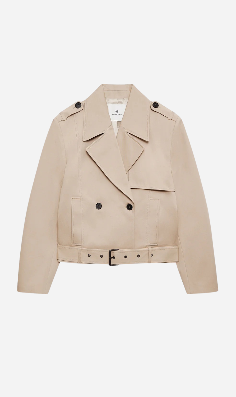 The Greer Jacket is a trench-inspired silhouette made from a lightweight cotton-twill fabrication.