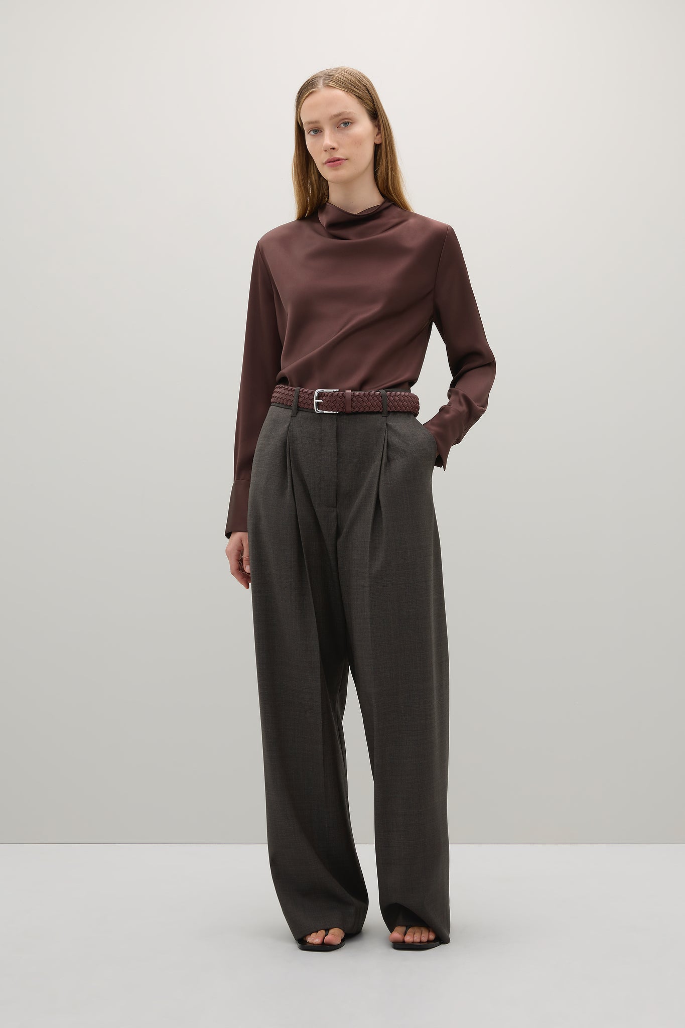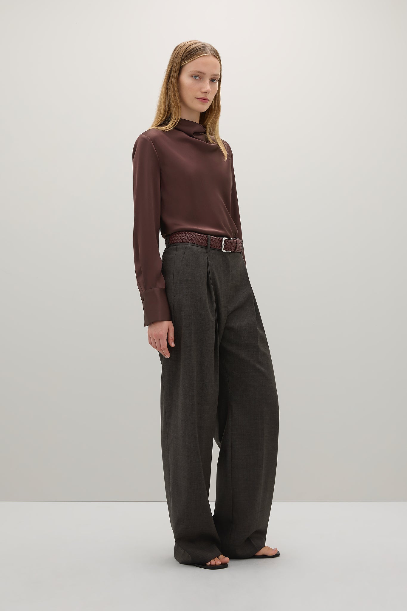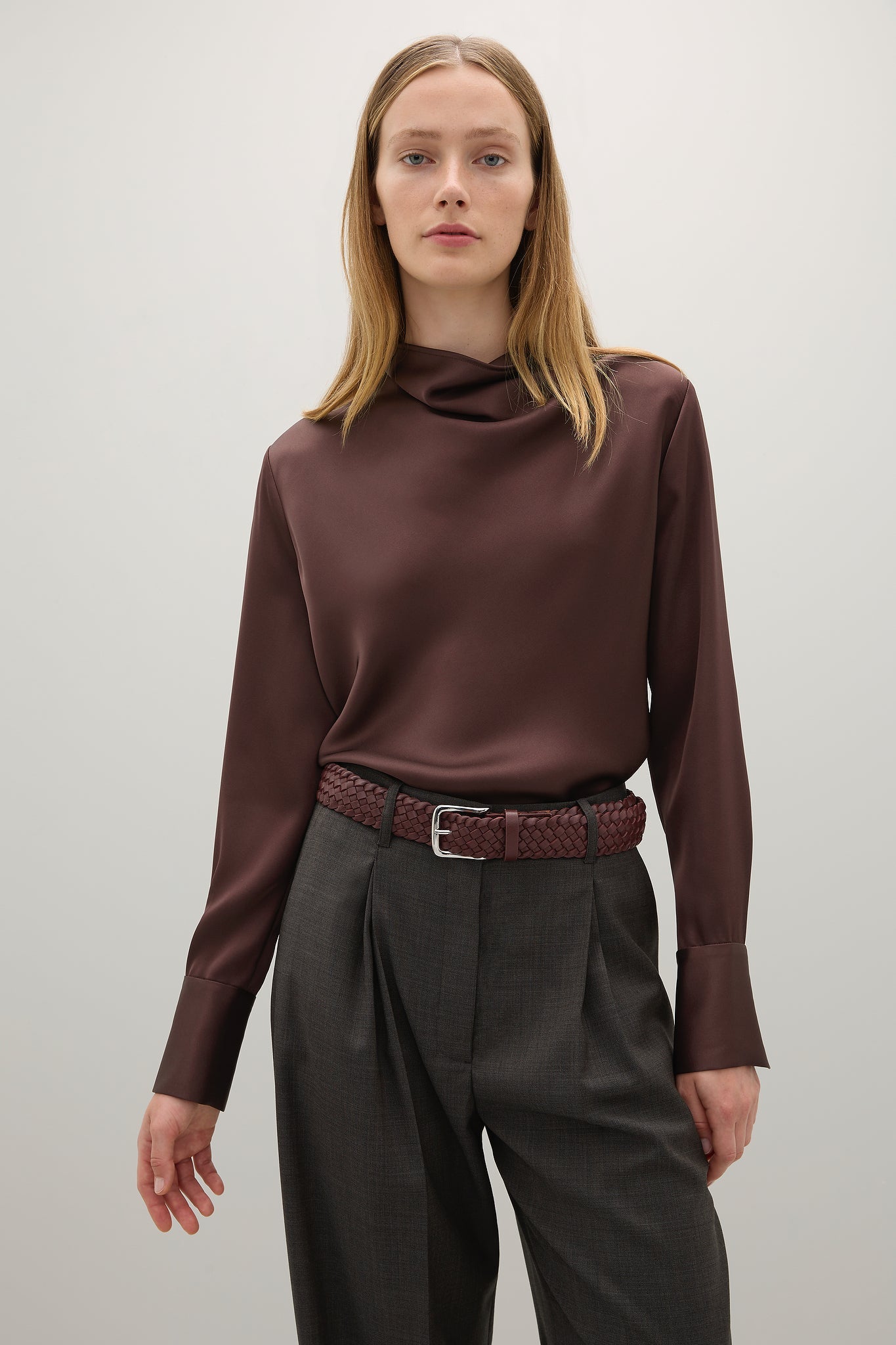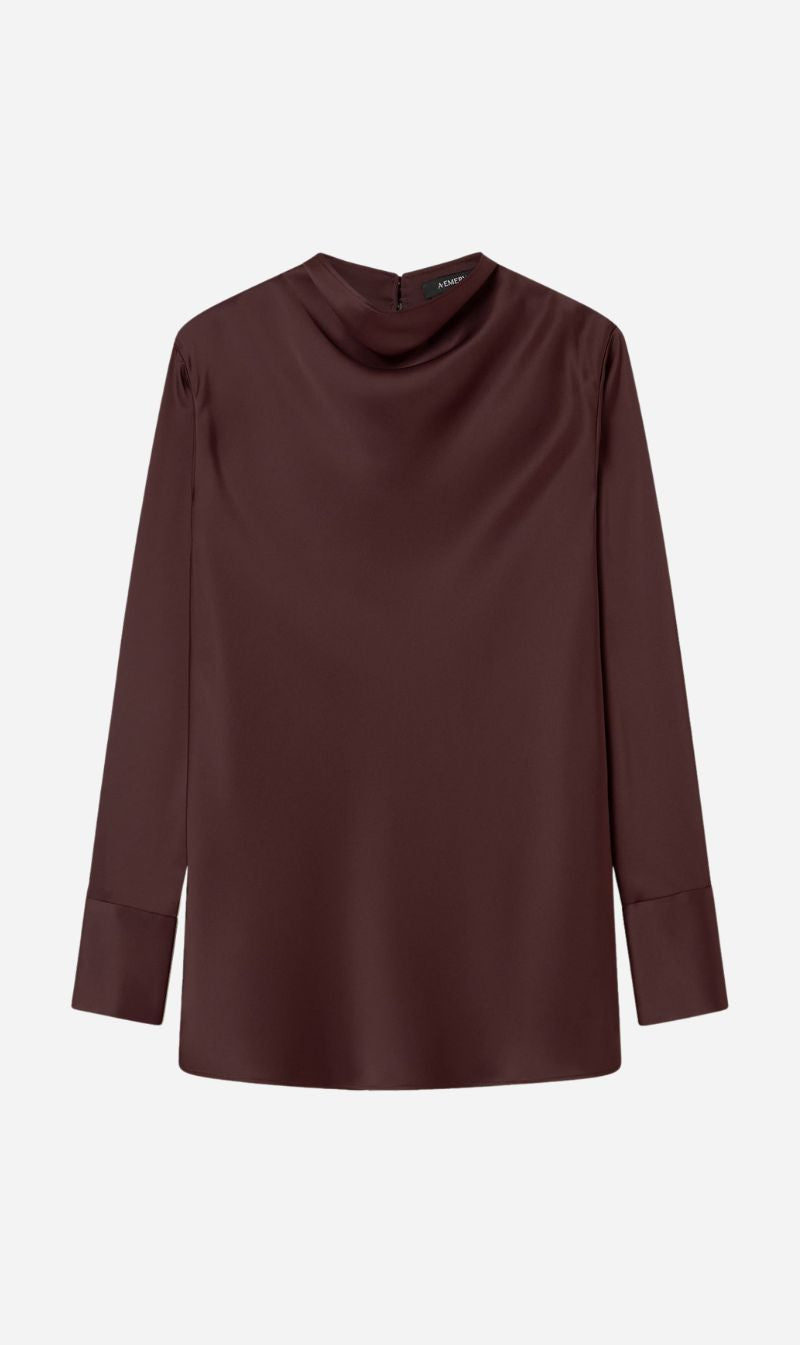 Cut on the bias, The Aitken Shirt is an elegant shirt crafted from Japanese triacetate offering a fluid fit and drape. Features include a cowl neck, wide cuffs and a centre back double button closure.