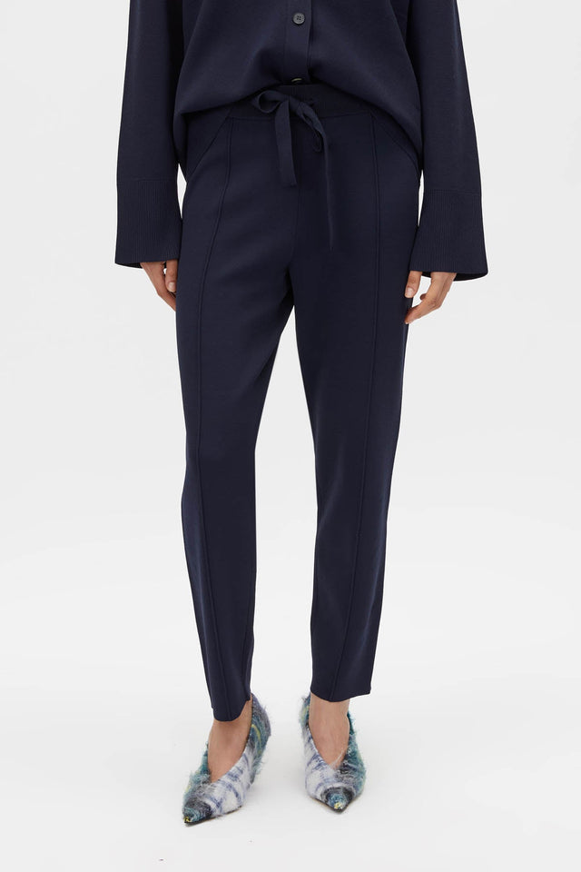 The Lyndon Knit Pant offers a refined design with a rib knit waistband and knitted drawcords for added comfort. Signature pin stitch detailing on the front legs enhances its modern, versatile appeal, while the fitted seat and slim leg provide a flattering silhouette. This essential piece is a practical addition to any wardrobe, effortlessly combining style and function.