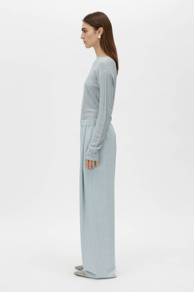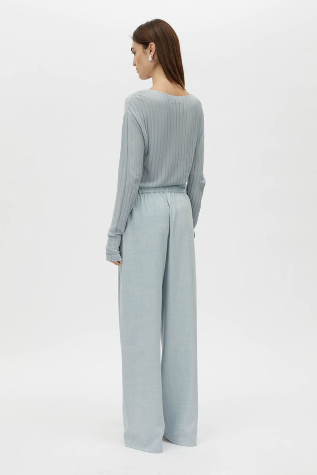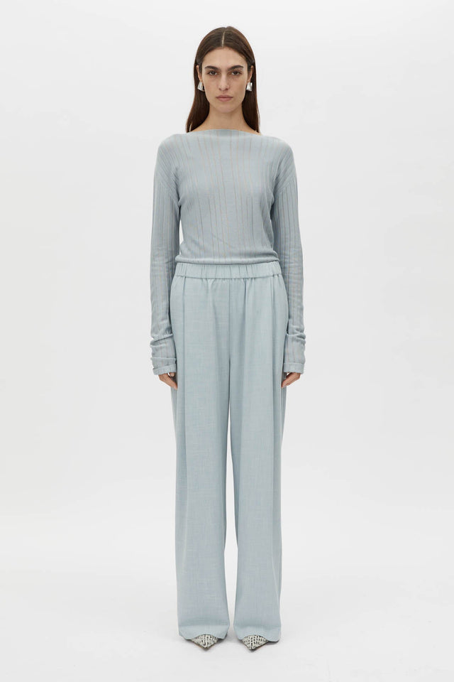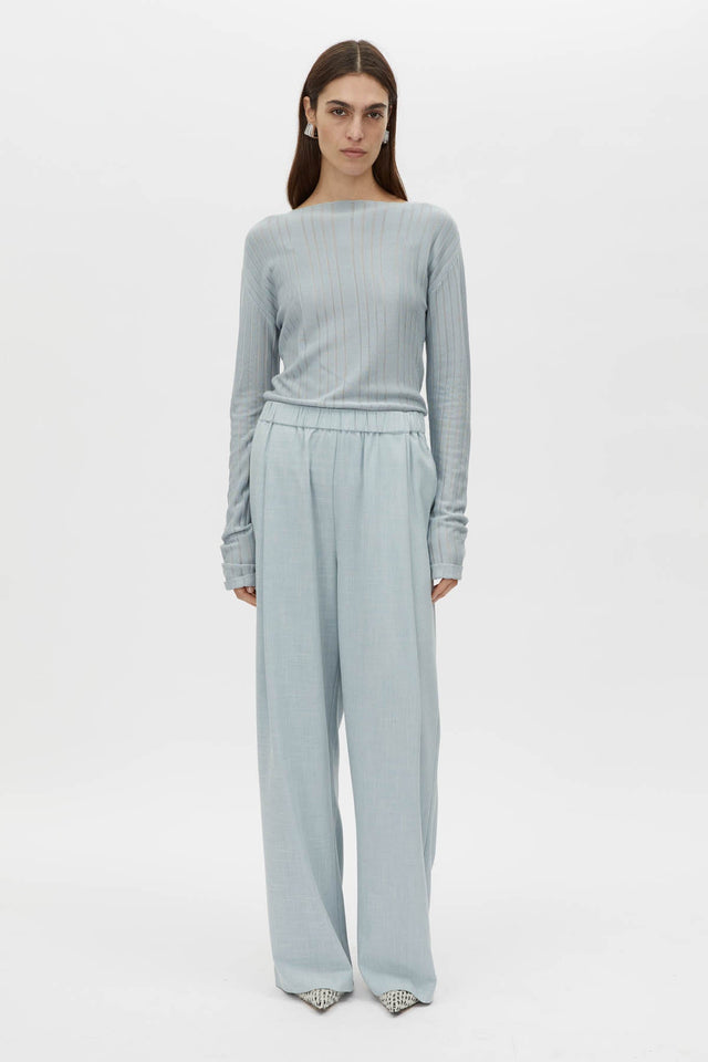 The Nevis Pant offers a timeless silhouette with wide pleats at the front, creating an effortlessly flattering fit. Crafted with a self-fabric waistband and practical inseam side pockets, these trousers blend refined design with modern functionality. Finished with a blind hem, they provide a clean, contemporary look for any occasion.