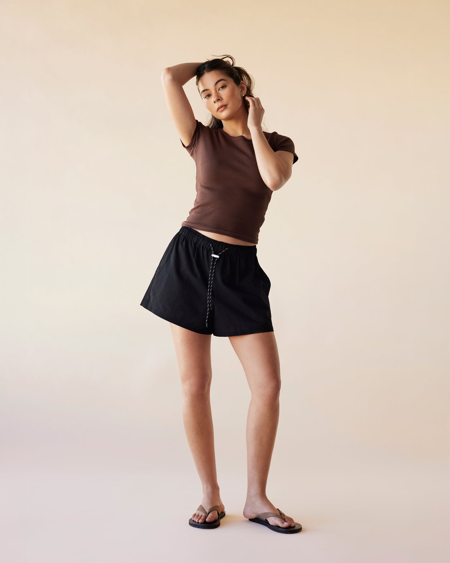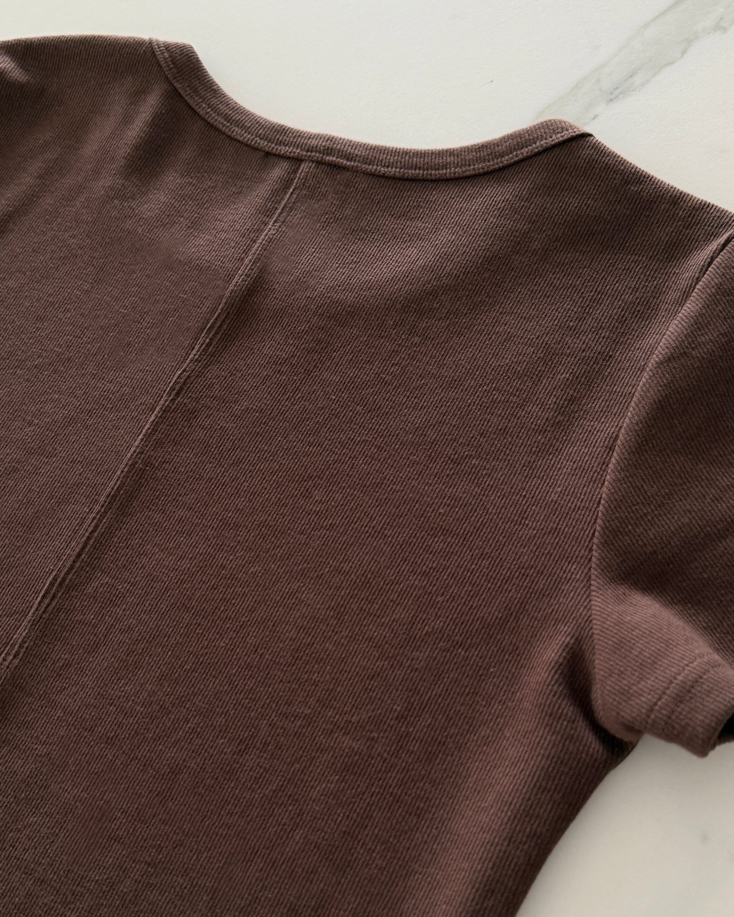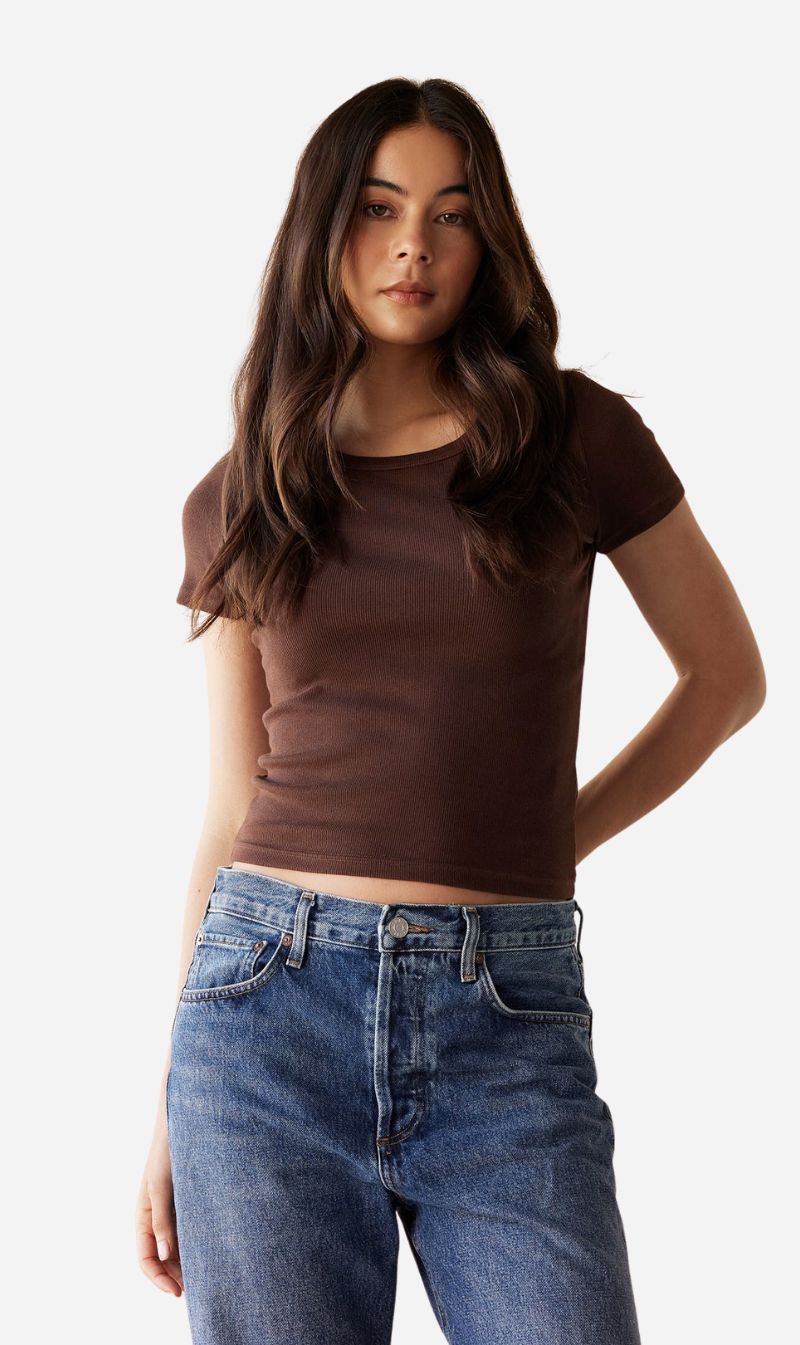 The Baby Tee is a wardrobe staple, thoughtfully crafted from premium cotton rib for a soft yet structured feel. Designed with a classic round neckline, short sleeves, and a flattering slim fit, this versatile style is a must have, the perfect everyday basic.Â