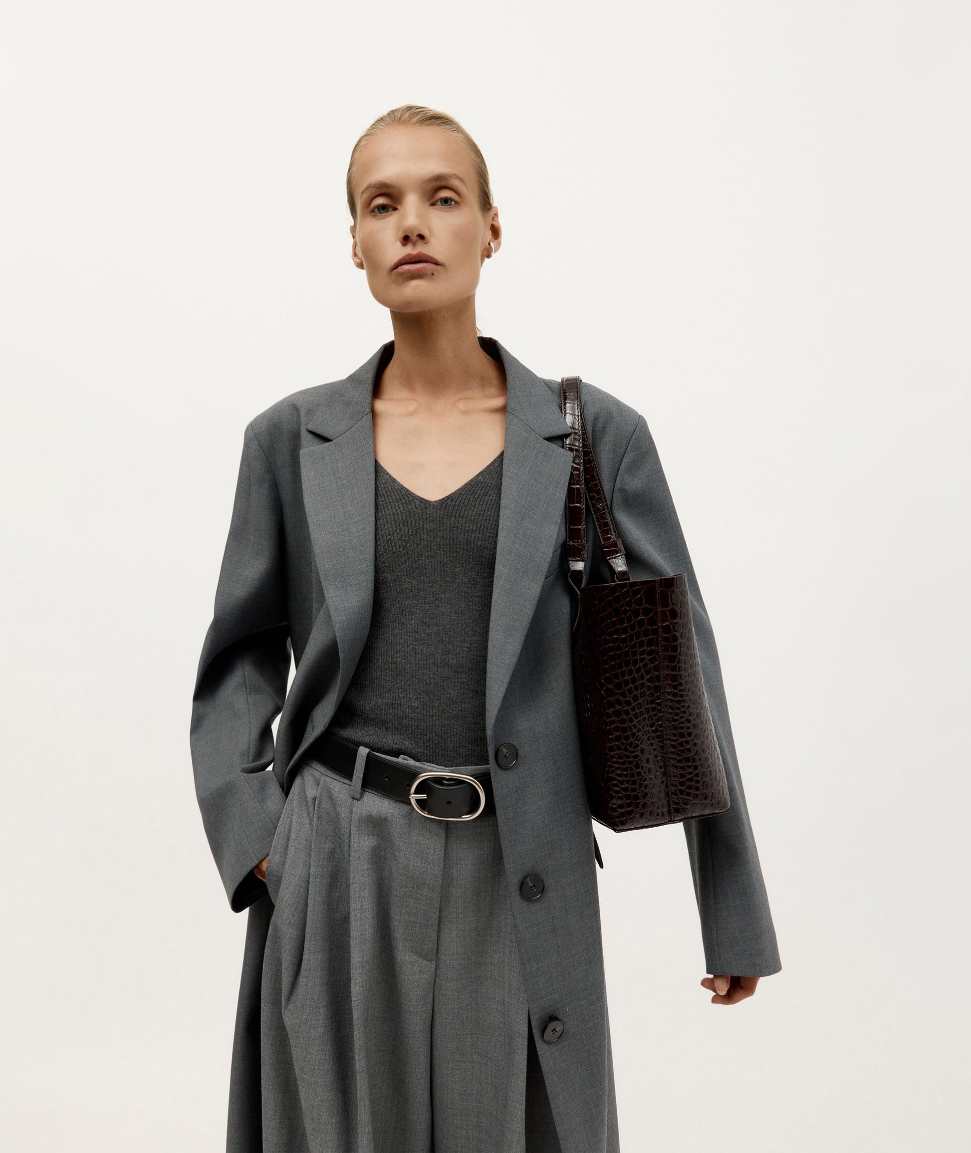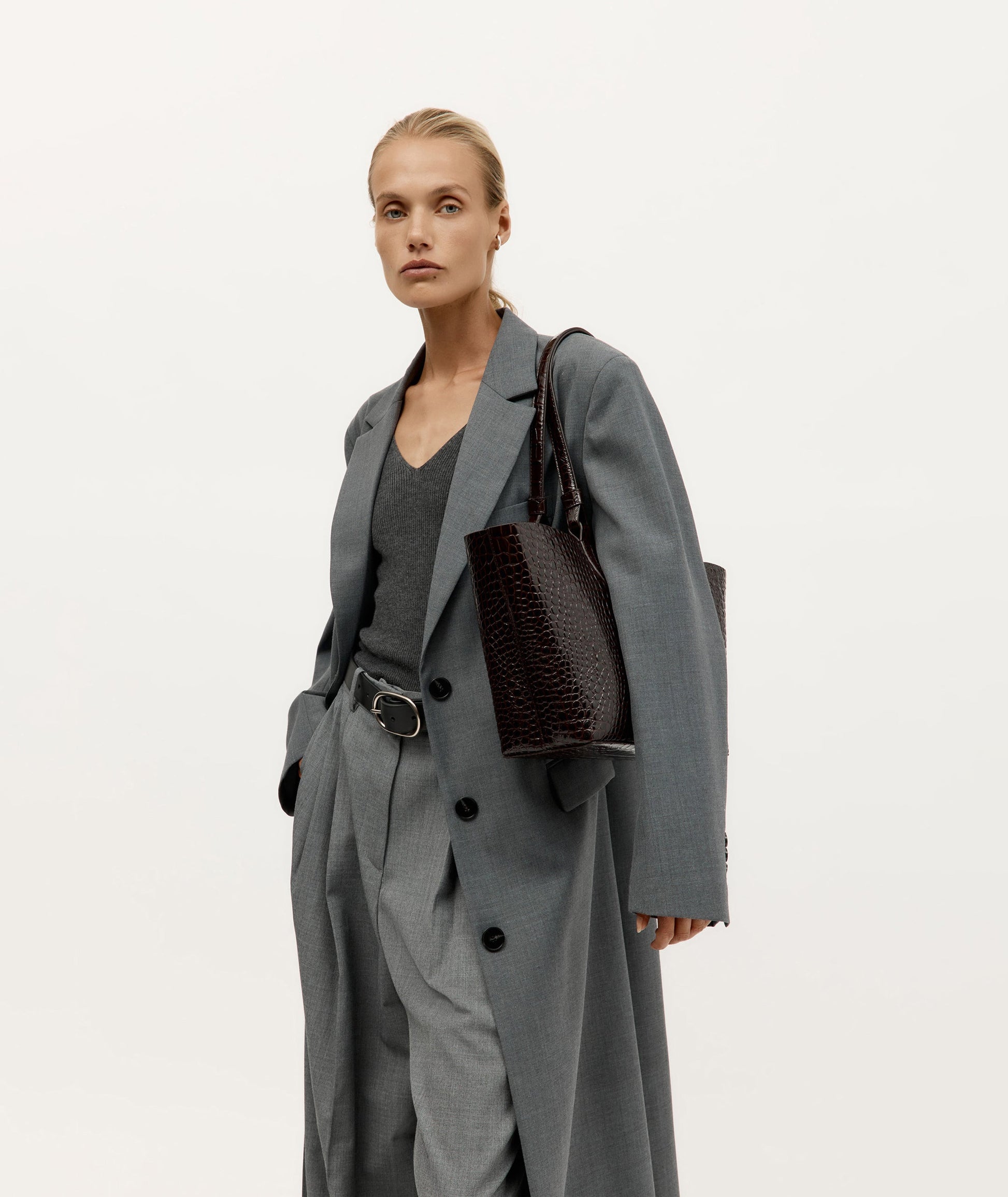 Mr Bandit Tote is as versatile as ever. Take him wherever you go - on the shoulder or in hand, with collapsible short and long leather loop handles. Handcrafted in Croc Embossed Calf Leather, he's safely secured with a brass closure and internal zip compartment.