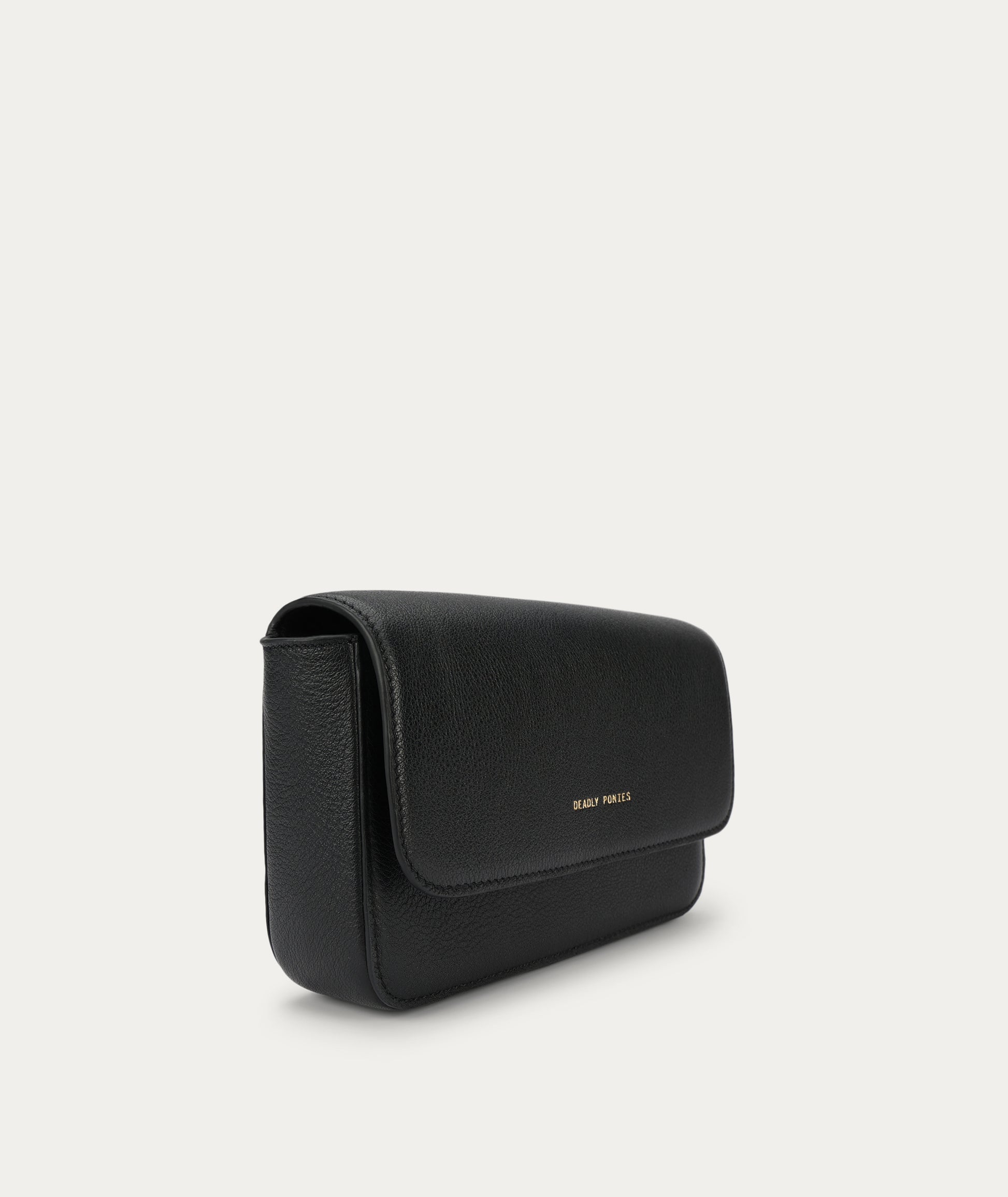 Mr D-Rex, a statement silhouette handcrafted with Calf Nappa and solid brass hardware. Seamlessly transitioning from day to night, he can be worn as a clutch by removing his detachable and adjustable leather strap, or hand-held with his front-facing brass chain. Inside, Mr. D-Rex features an internal slip pocket and a secure magnetic brass closure.
