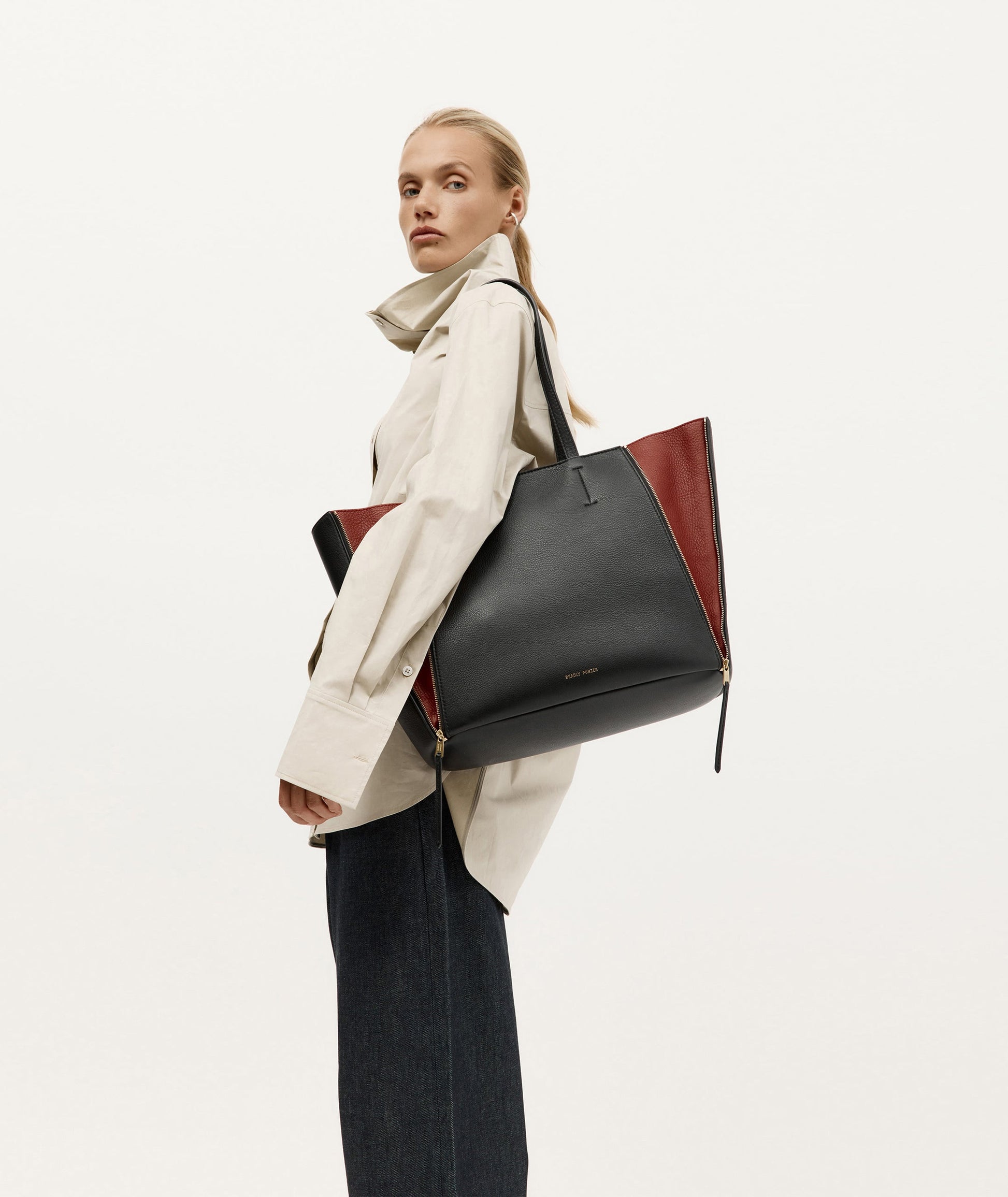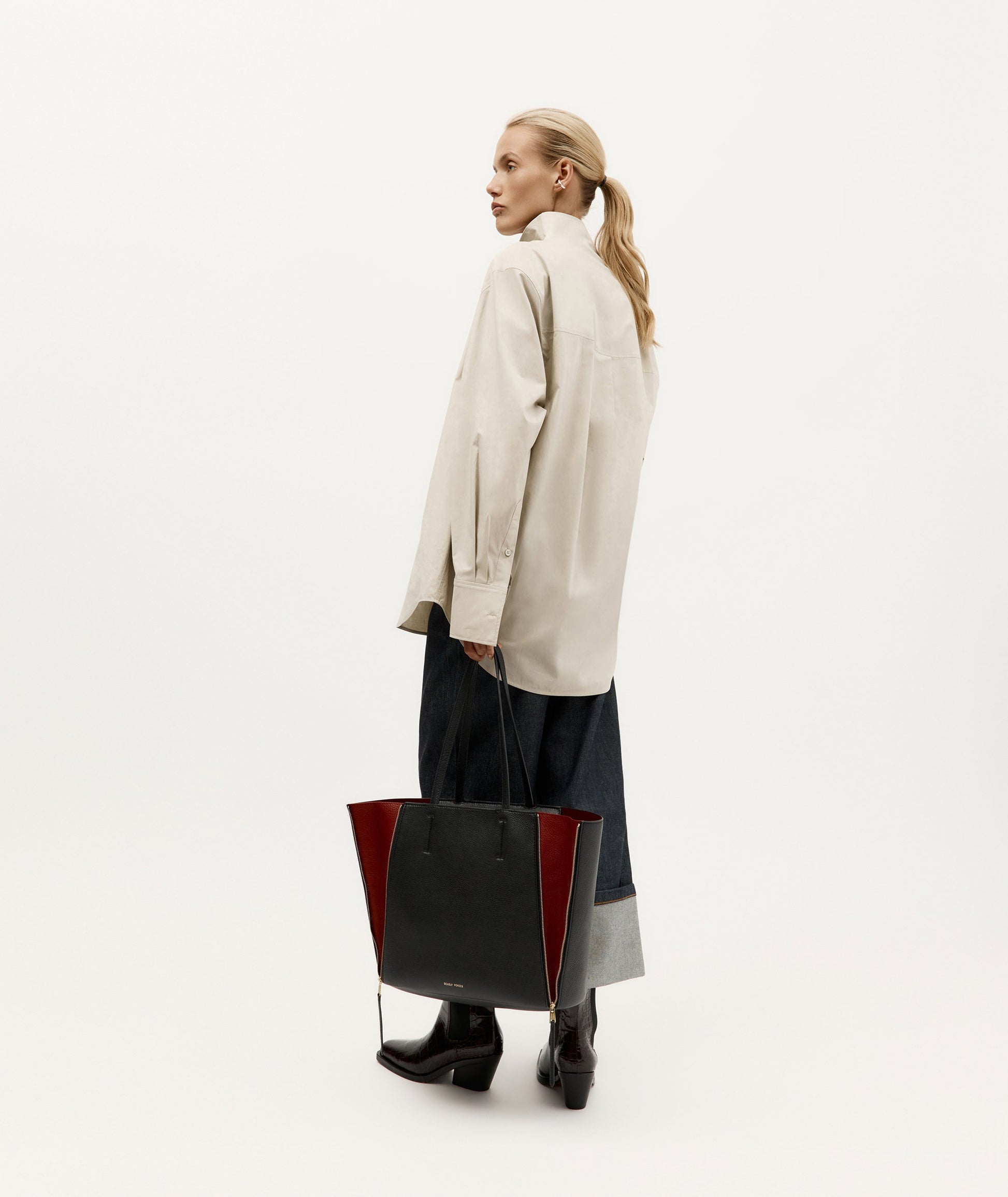 Defined by simplicity and purpose, the Mr Scurry Tote features dual handles and a zip gusset detail at the front. A secure zip closure and an internal zip pocket ensure your essentials stay organised. Spacious enough to fit a 15-inch laptop, the Mr Scurry Tote is a functional companion for daily life, crafted from soft Calf Nappa leather and finished with signature brass hardware.