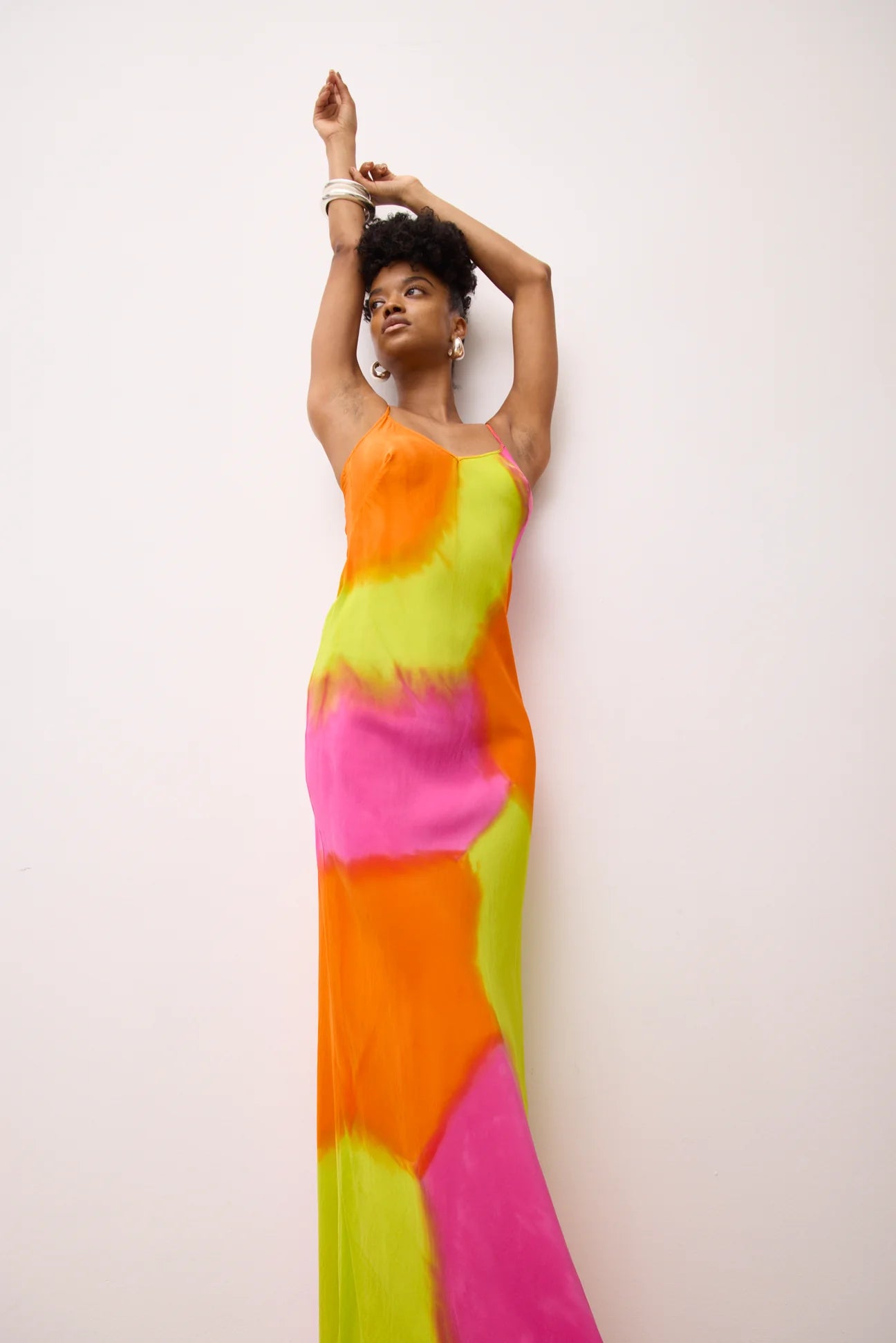 Style Milka Two-tone bias cut cami dress is suitable for all body shapes to create your own look from casual to weekend vibe. Milka features adjustable straps and french seams.