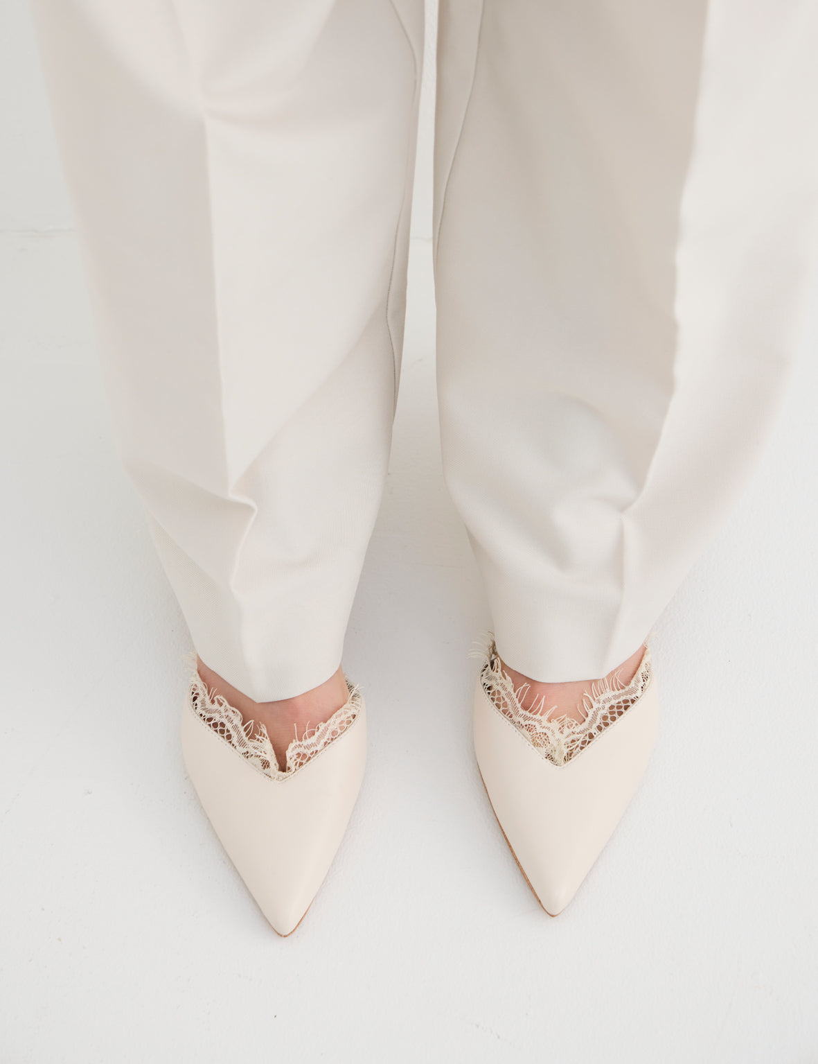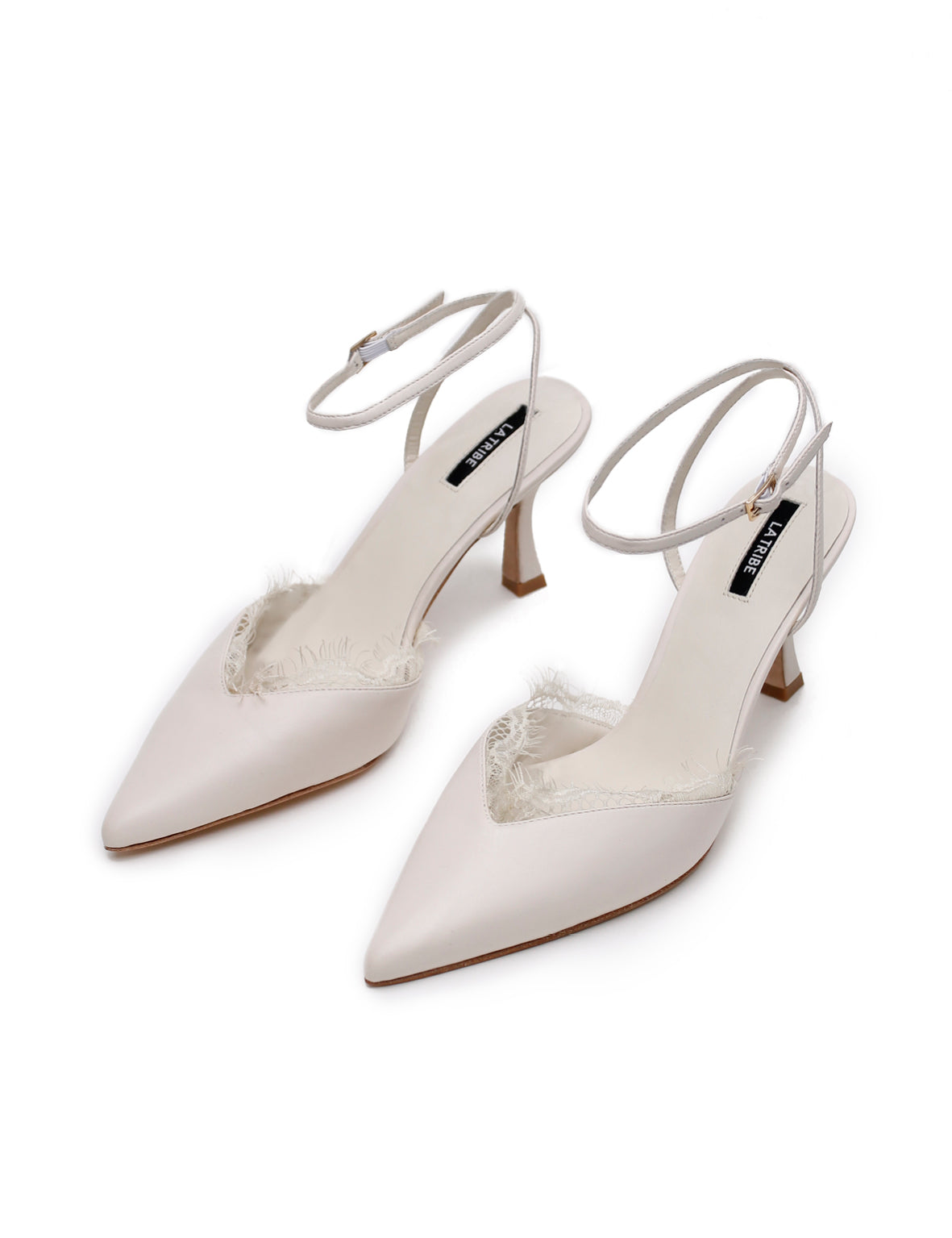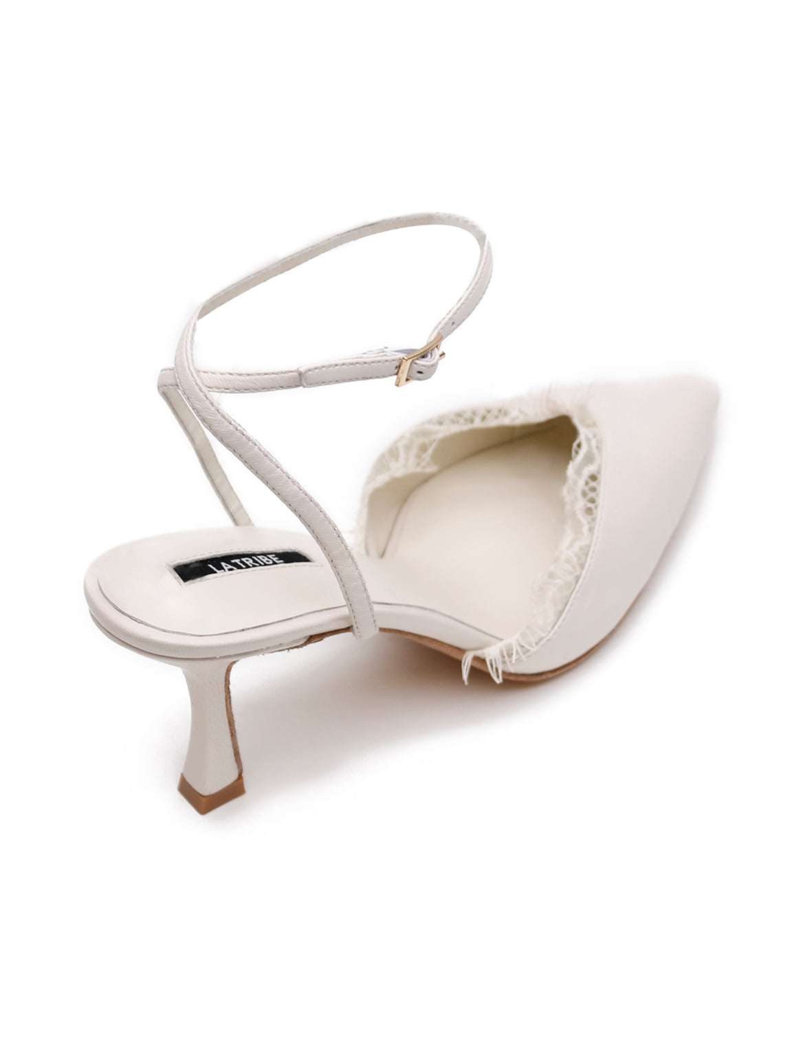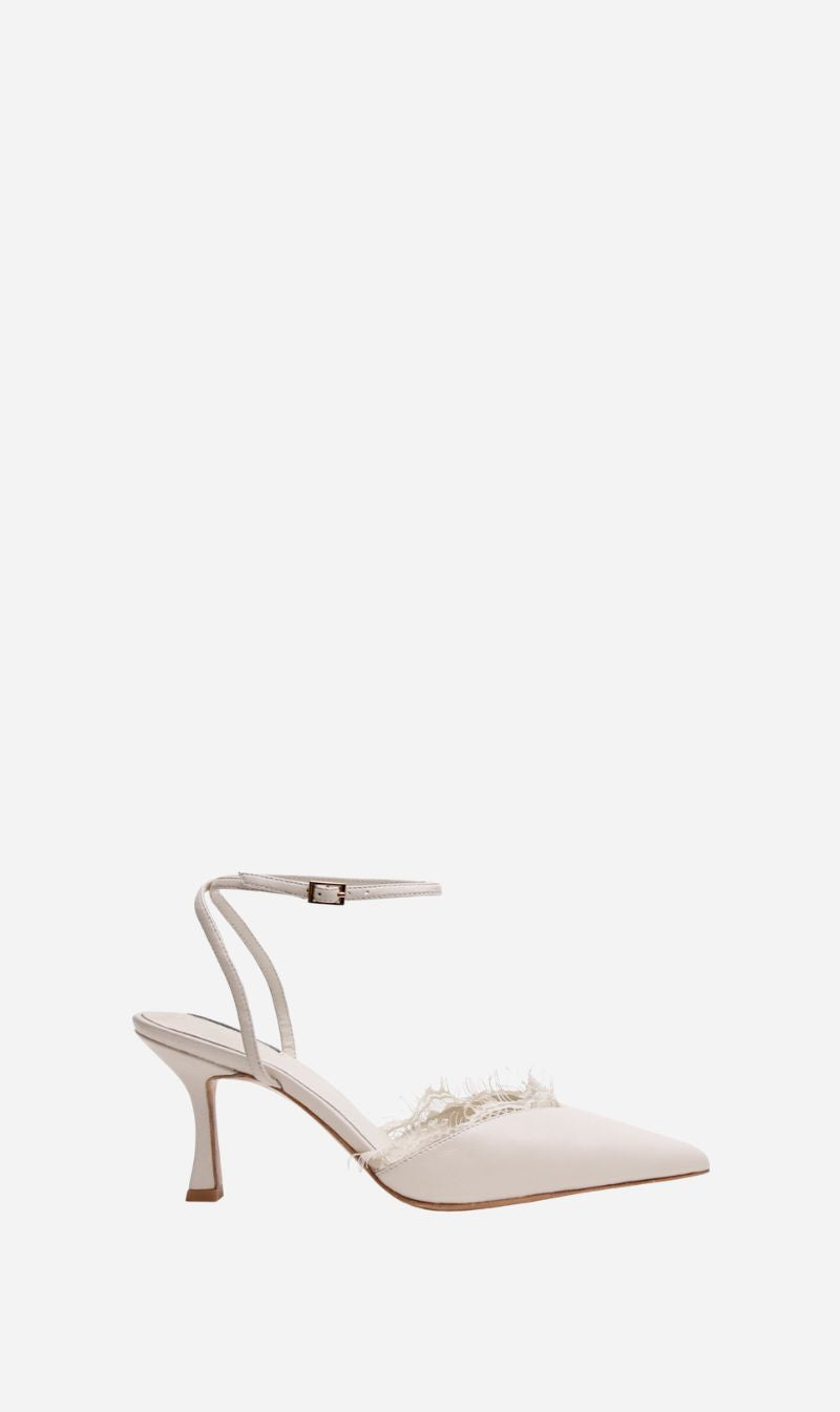 The indy heel is finished with a delicate eyelash lace detail offering a touch femininity. An elevated option for special events.