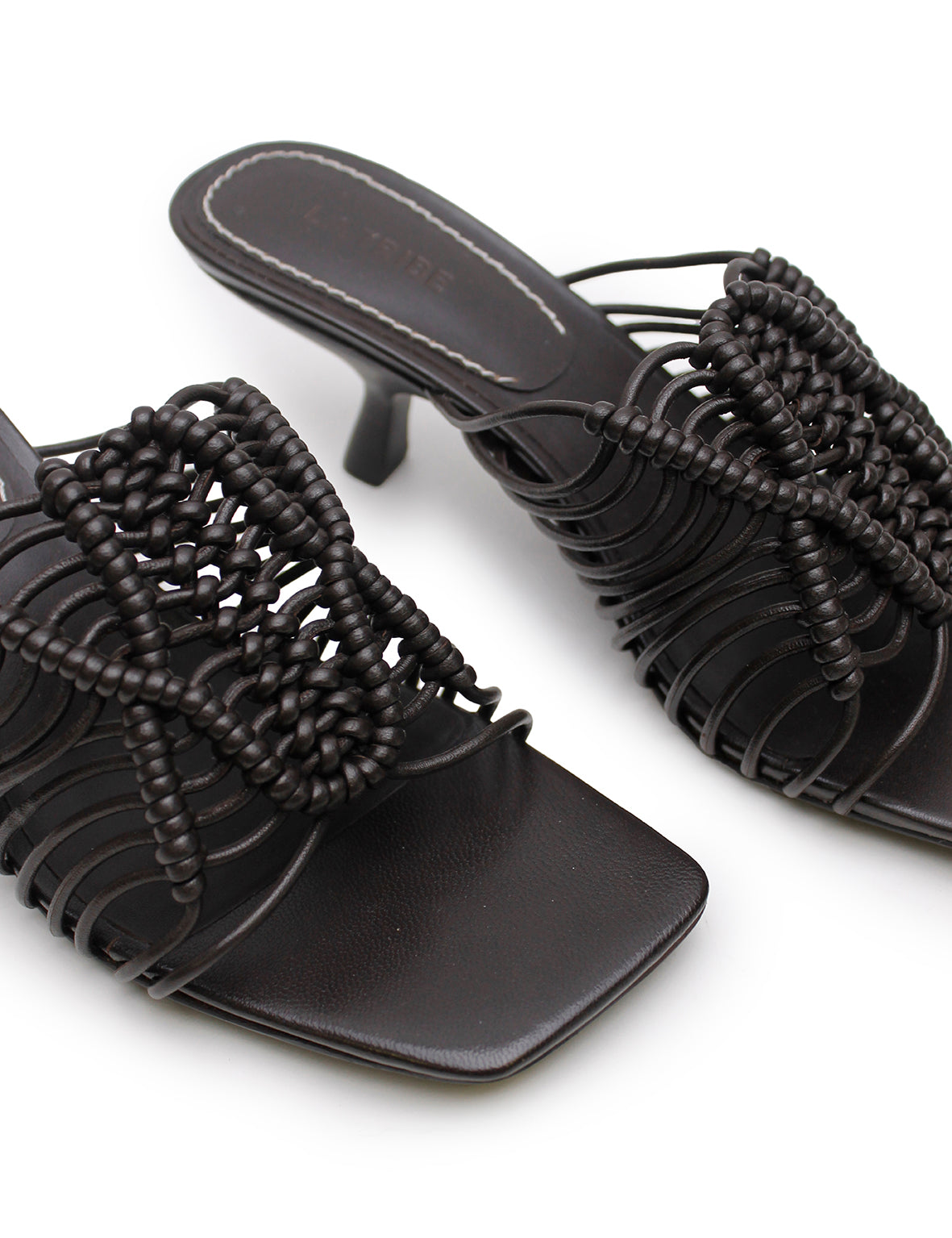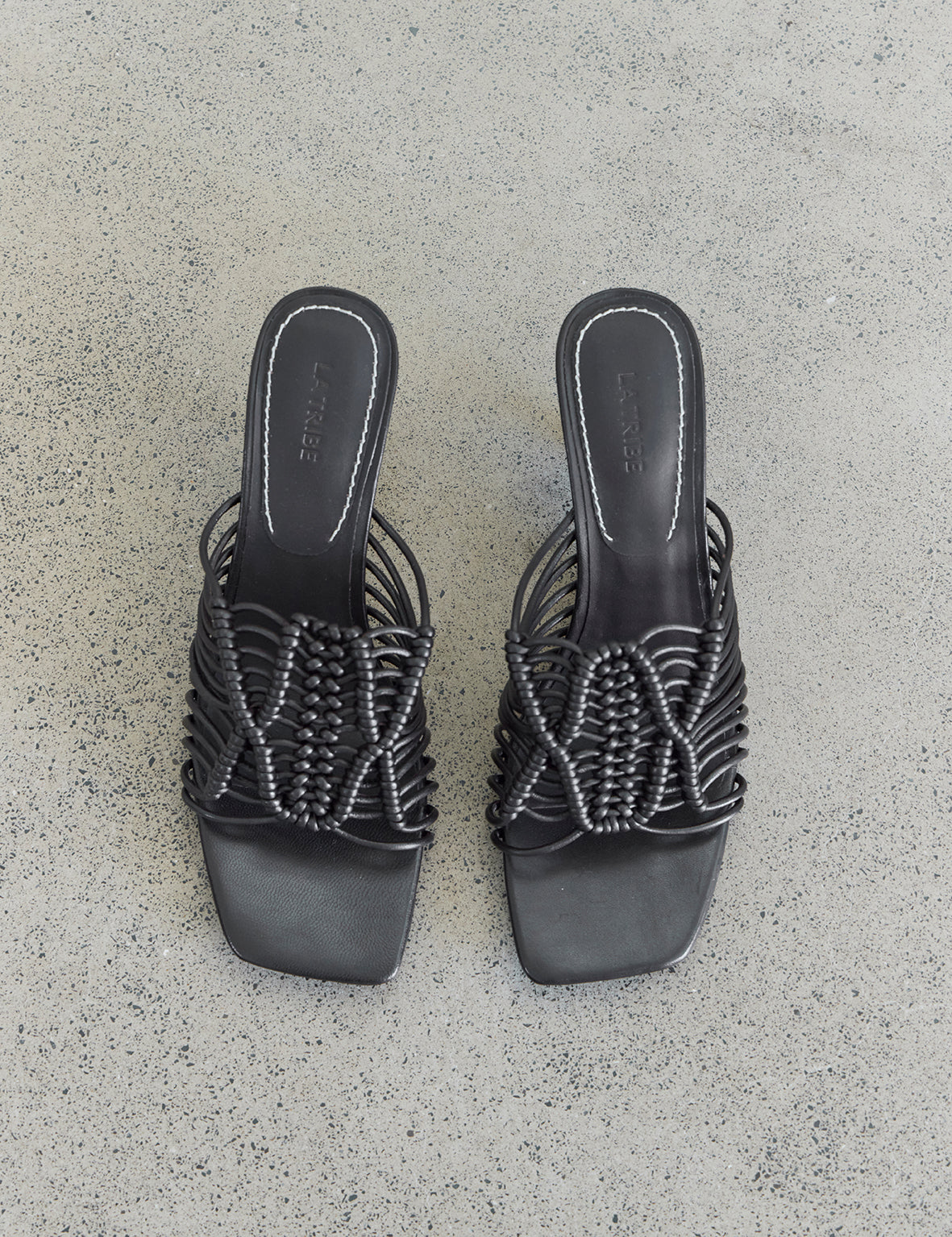 The Macrame heel showcases a stunning handwoven detailing and sculptured heel giving this style an effortless, elegant look. Slip-on design finished with a soft square toe. The perfect balance for your next date night.
