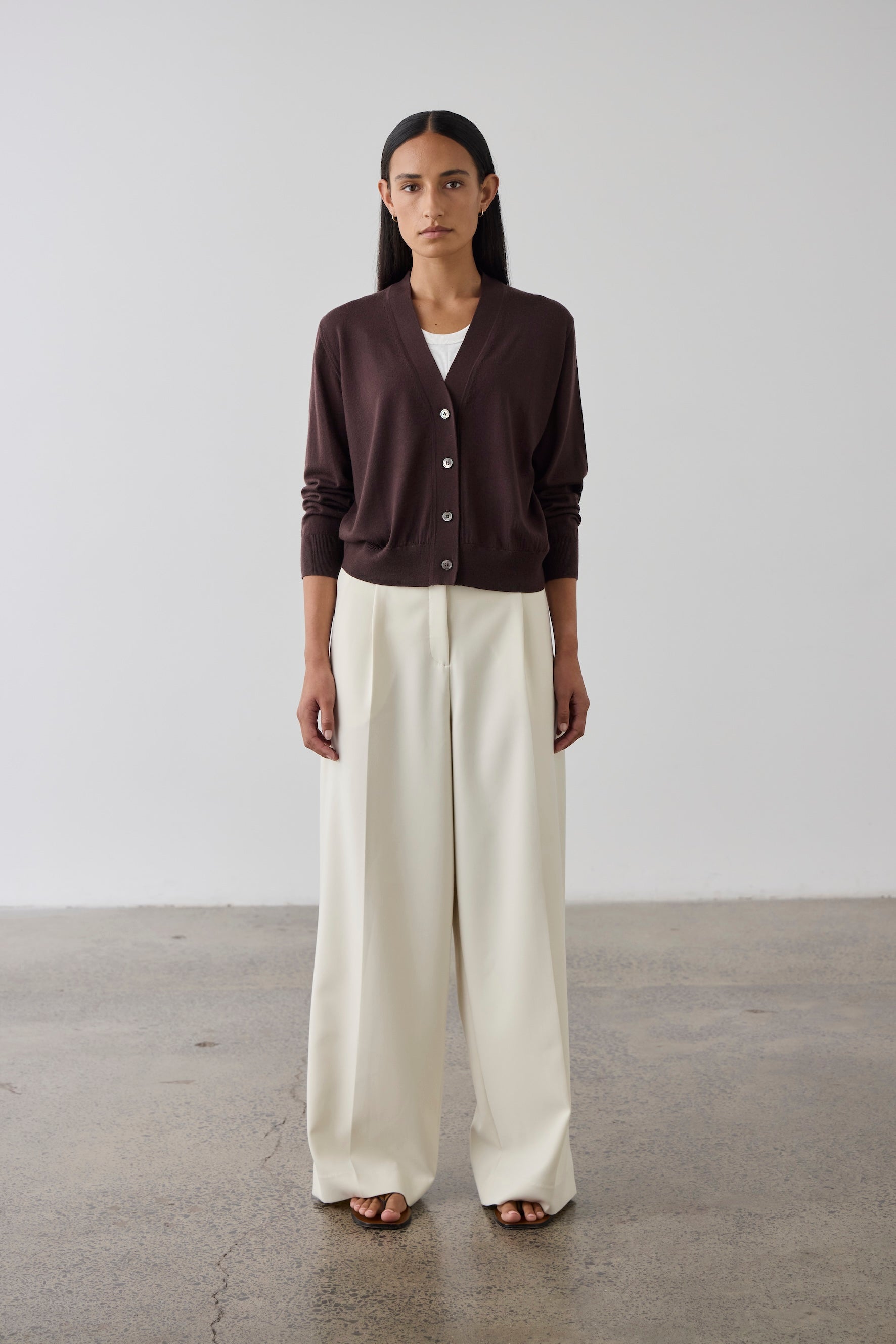 A refined summer essential in pure merino. This women's 100% merino wool cardigan is knitted in a fine 16-gauge for a smooth, featherlight feel. With a straight fit that sits off the body and gently skims the top of the hip, it's an elevated staple designed for modern, everyday layering or can be worn on its own.