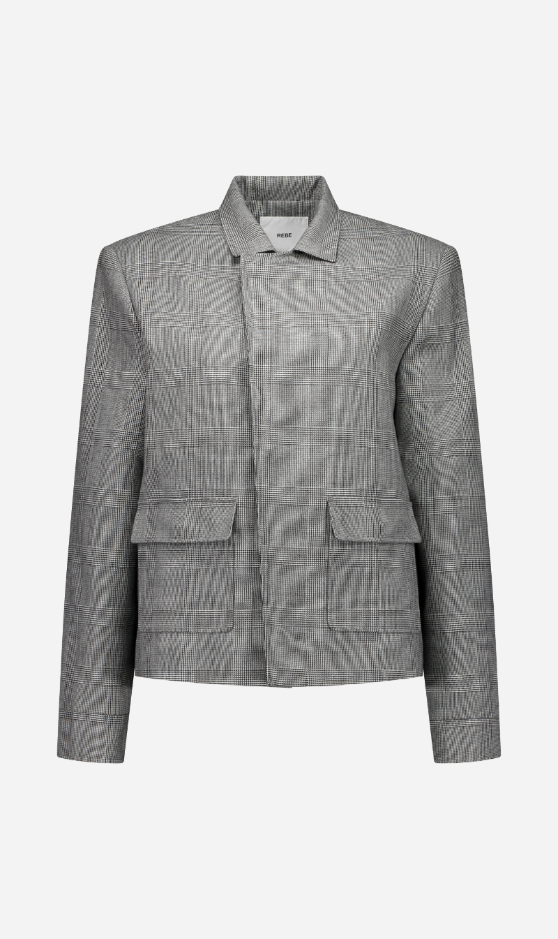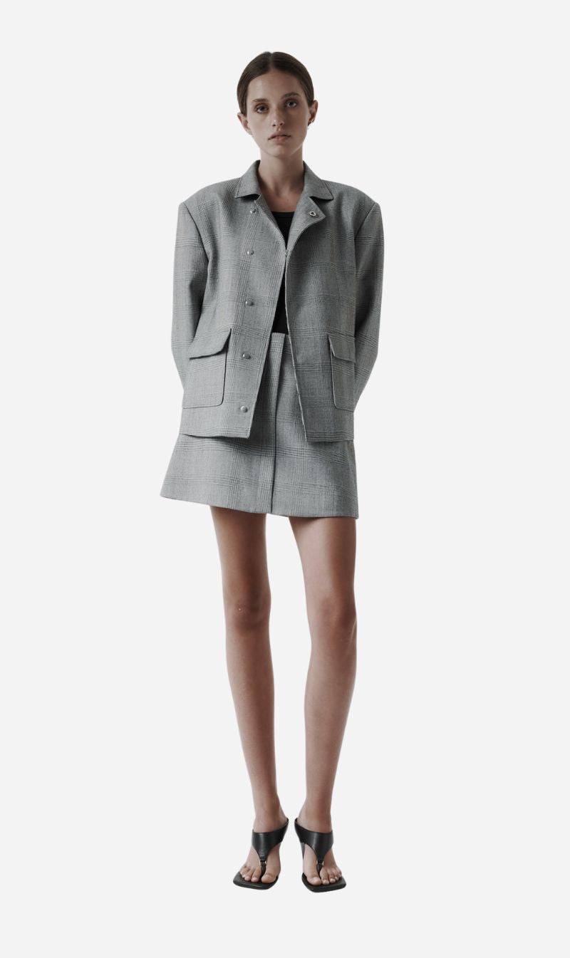 A tailored take on utility, the Bianca Jacket is crafted in a subtle houndstooth check in a mid-weight wool blend. Relaxed in cut, it features a concealed snap-button front, dual tailored pockets, and a contrast underside collar.