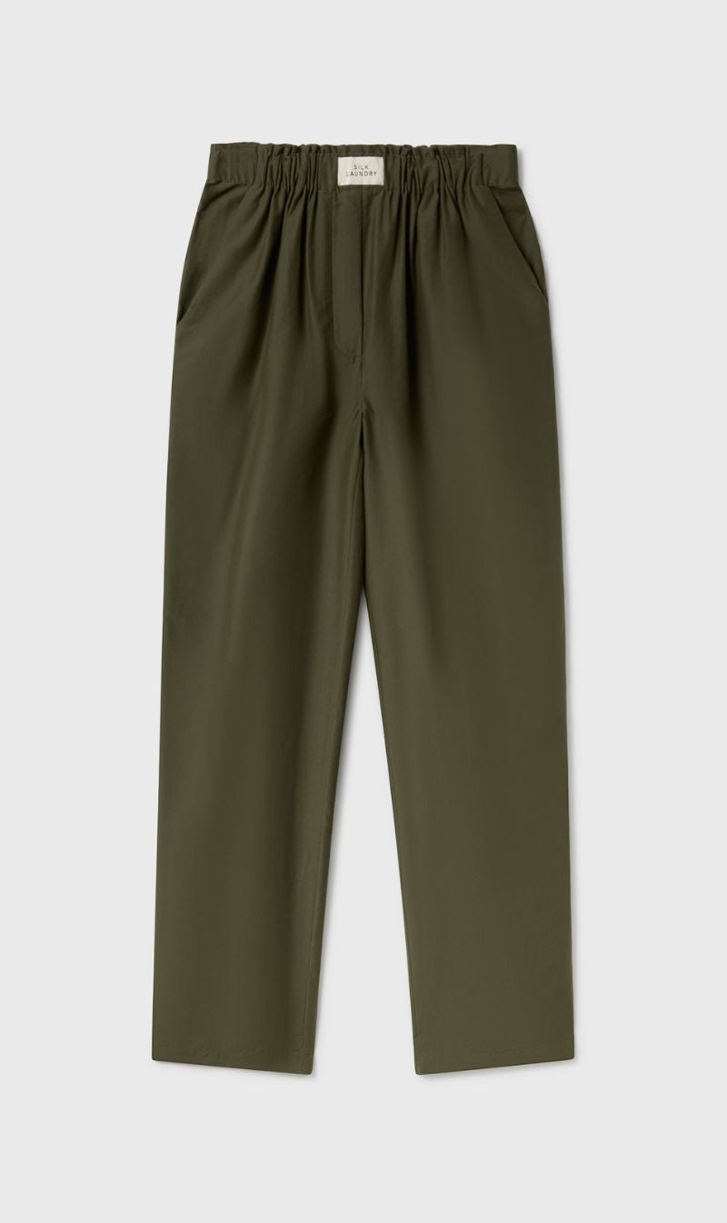 Silk Laundry Cotton Silk Paper Bag Pants feature a straight-leg design with an elastic waistband for a relaxed fit. Complete with side pockets and a full lining for comfort. Made from 75% Silk and 25% Cotton.