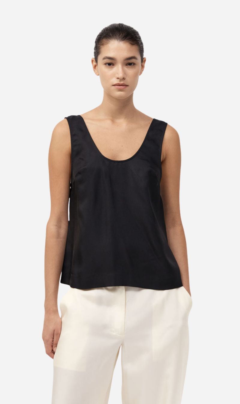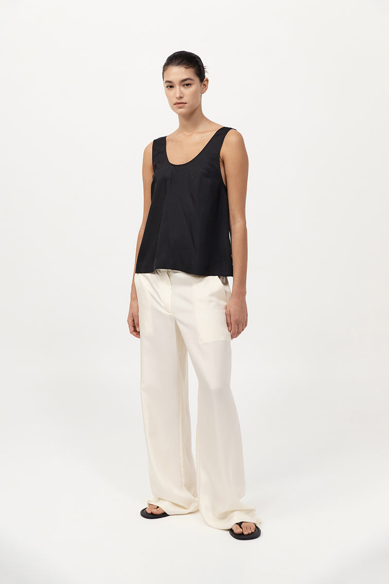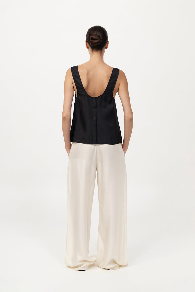 The Jordan Button Up Top is a minimal silhouette elevated by its subtle detailing. Crafted in silk twill, it features a low scoop neckline and a buttoned split at the back for an athletic touch. The Jordan Button Up Top is a refined piece for elevated day-to-evening wear.