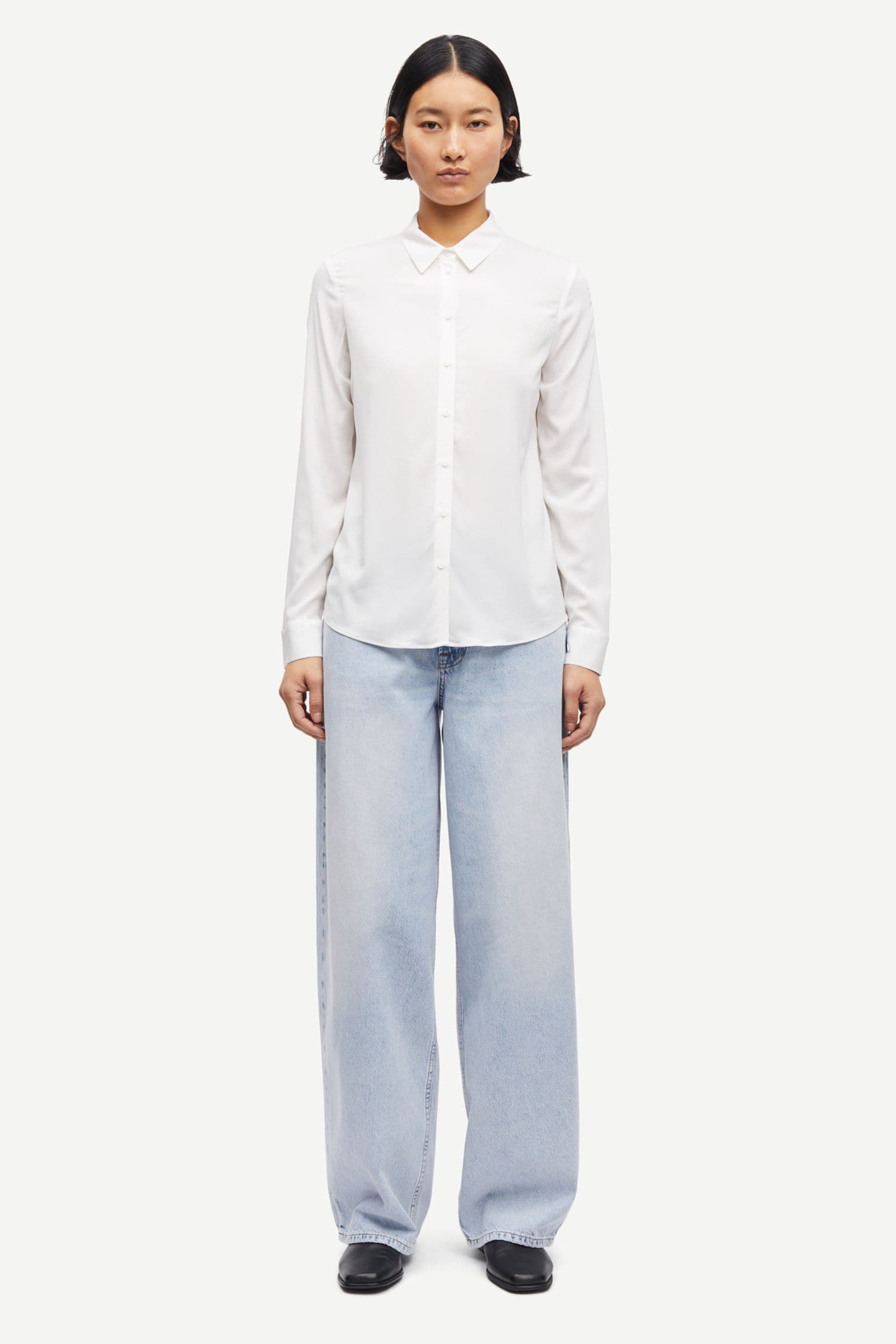 Mid-waist jeans with a loose fit and curved leg. Button and zipper closure on the front. Five pocket style. Main material made from a blend of organic cotton and recycled cotton.