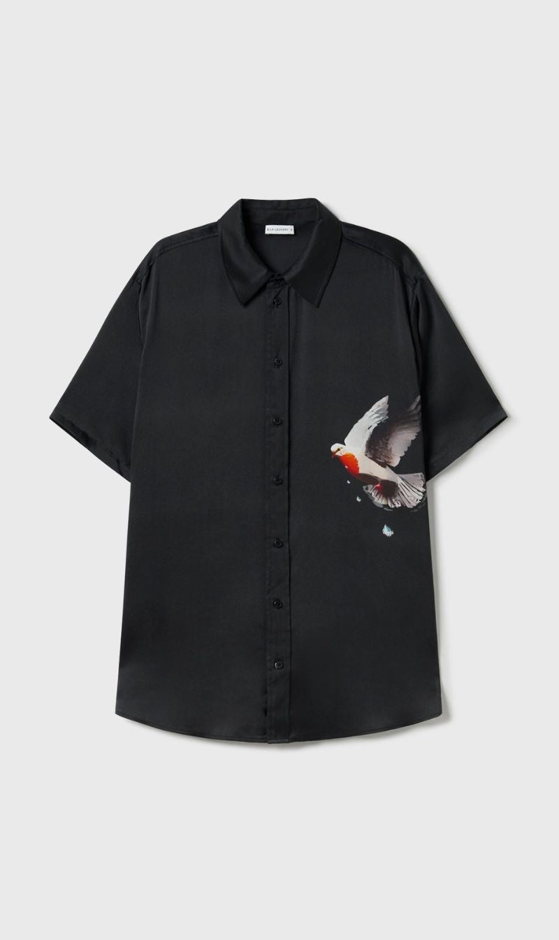 Silk Laundry short sleeve shirt crafted in 100% silk detailed with a button-down front and utility pockets. Designed to echo an original menswear style for a relaxed fit.
