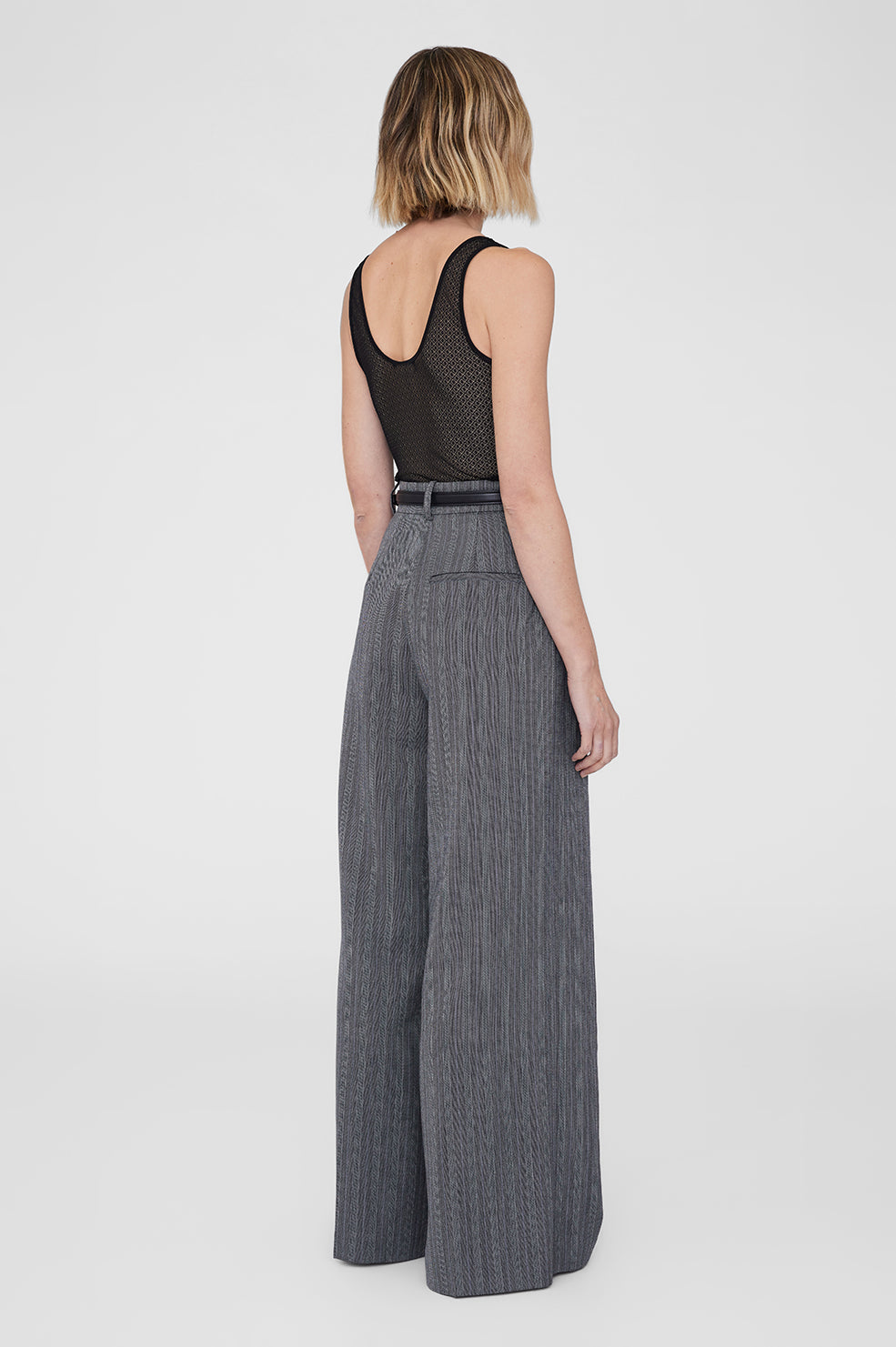 The Alysha Bodysuit is crafted from a sheer, geometric stretch-lace fabrication. It features a pull-on construction with deep scoop front and back necklines, high-cut leg openings, a satin liner, and thong back. Finished with a small hand-tacked ANINE BING monogram charm.