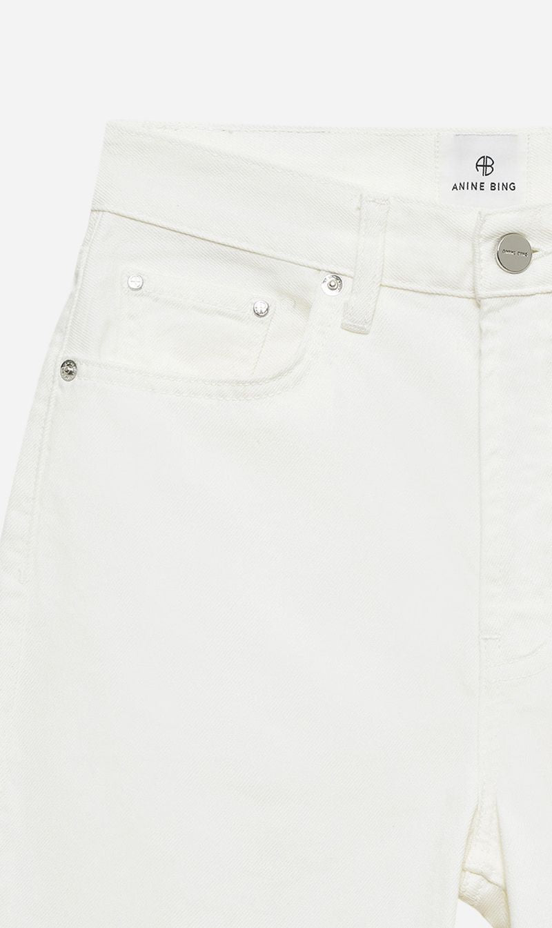 The Kat Short by ANINE BING is a high-rise, straight-leg essential crafted from midweight regenerative cotton denim in a timeless medium blue wash.