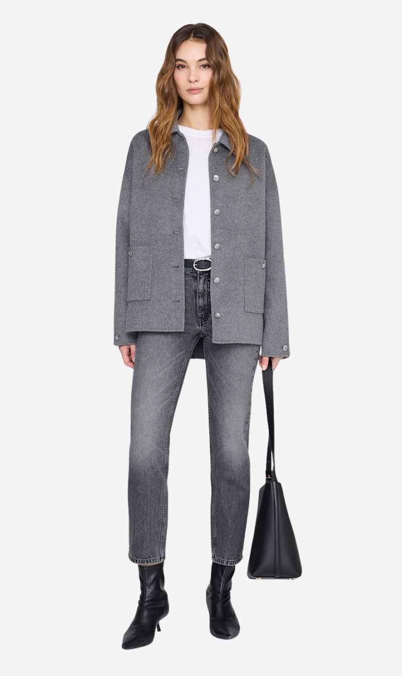 This timeless silhouette is crafted from ANINE BING’s signature cashmere-blend fabric for warmth without bulk. Designed with an effortless, slightly oversized fit, it balances structure and softness for easy layering season after season. Thoughtful details like engraved gold buttons and a fully lined interior, deliver a quietly luxurious finish.