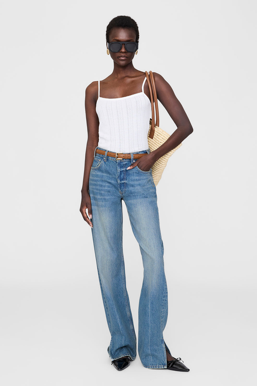 The Nicola Belt is crafted from 100% leather with a slight sheen. This style is slightly padded and features a custom square-shaped, 14k gold-plated buckle engraved with subtle ANINE BING branding.