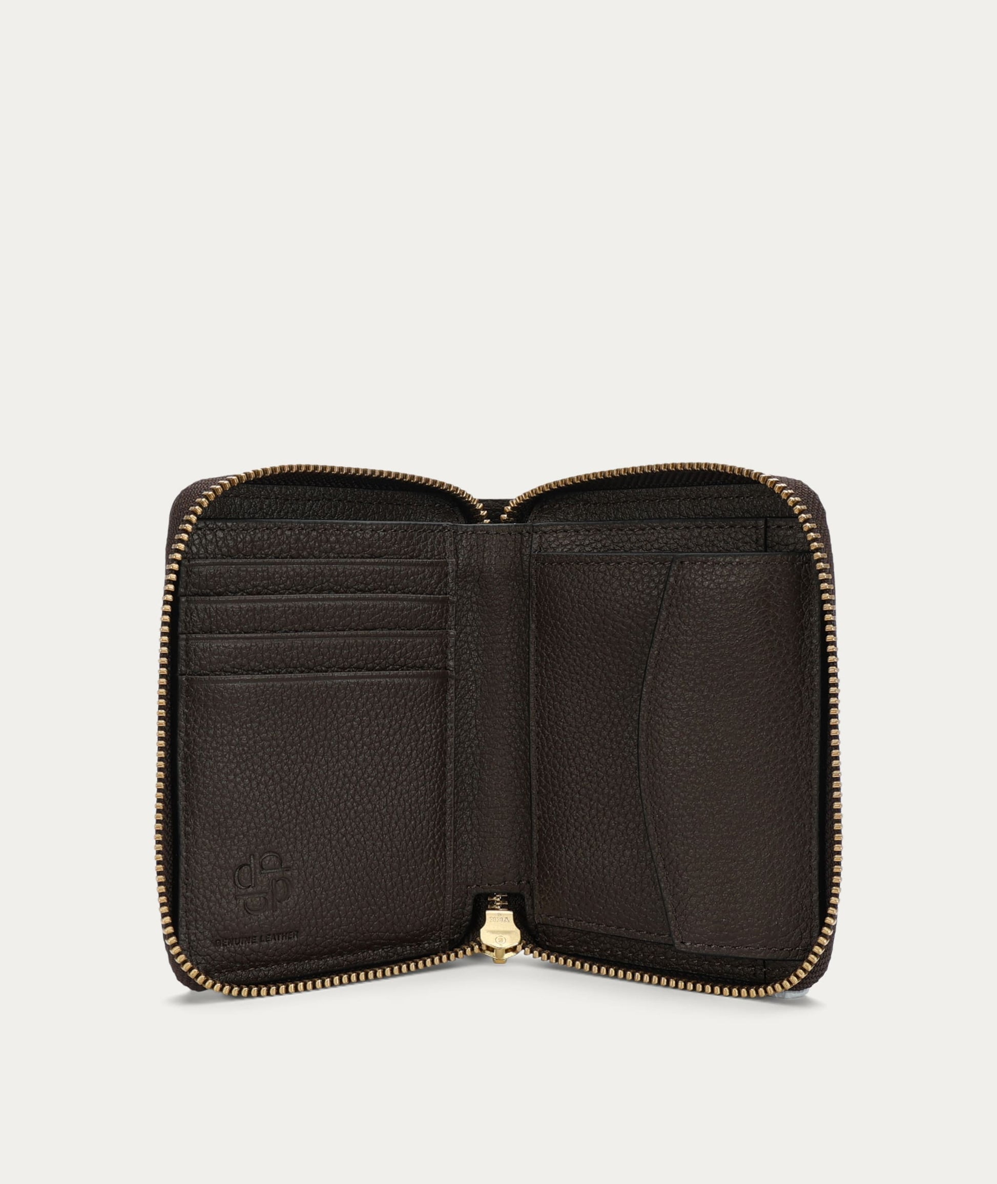 The Deadly Ponies Mini Wallet in Java is crafted from Grained Calf Leather. Slimline yet functional, it features a brass zip closure and offers five card slots, two cash compartments, and a domed coin pocket.