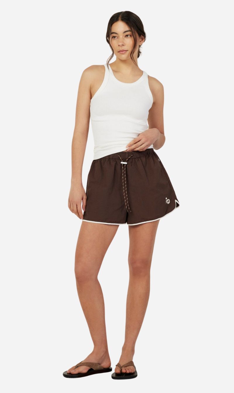 Crafted with movement and versatility in mind, the perfect short for everyday wear. Featuring a comfortable elasticated waistband with adjustable toggle drawcord, low-profile zip pockets, flattering cut and contrast bias hemline detailing. This core style is a must have in your functional wardrobe edit.Â