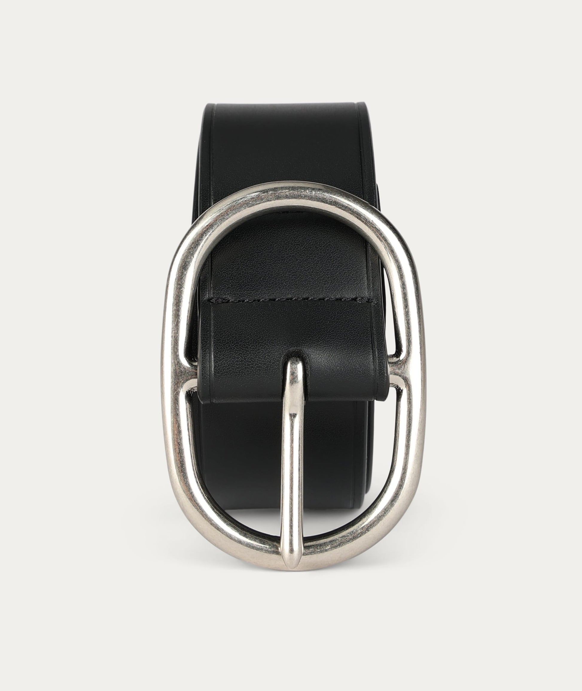 The Wide belt is functionality, refined. Sure to become part of your essential daily wear, this belt is expertly handcrafted from our long-wearing black Calf Belting leather and features our signature Deadly Ponies Silver buckle. The Wide belt is 3.5cm wide, and available in three sizes.