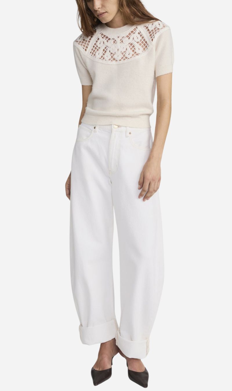 An exaggerated take on the trending barrel silhouette, this unique fit is your new closet necessity. With a flattering high rise, these jeans feature a curved outseam for a playful bubble effect. Designed to be worn cuffed and hit at the ankle, the 2.5" twice-rolled cuff can be unrolled for a longer, more dramatic inseam.