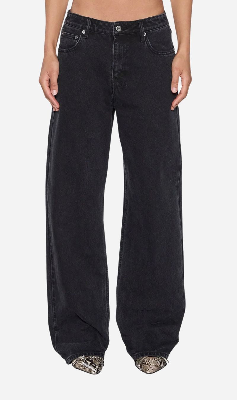 Crafted from premium rigid washed black denim, this low-rise jean features a relaxed straight-leg silhouette and classic five-pocket styling. Signature Ksubi T-box and 3x4 embroidery branding, along with anti-silver hardware, give it subtle edge, perfect for styling fitted or oversized depending on your preferred look.