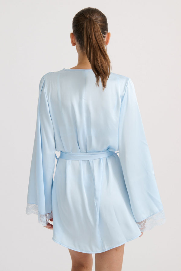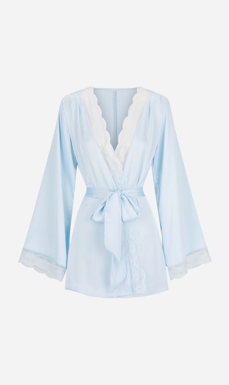 With vintage lace trim and a flattering silhouette, the Sidney Robe in Frost is perfect for all your special moments. Whether it be the morning of your special bridal day or lounging around in elegance.