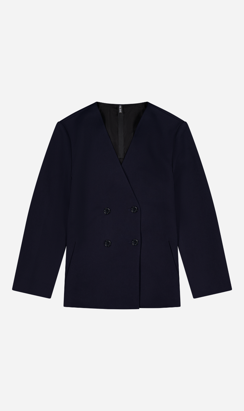 Cut from smooth wool-blend suiting, the Joel Blazer features a relaxed, double-breasted silhouette with a collarless neckline and softly structured shoulders. It pairs effortlessly with the matching Dree Cargo Pant.