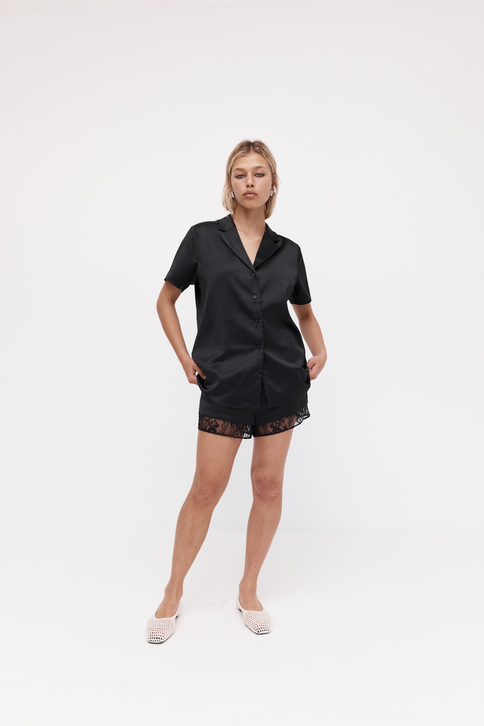 The Rebe Short Sleeve Silky Shirt is crafted from a smooth satin. Featuring a relaxed camp collar, this versatile shirt is perfect for both casual and polished occasions. Complete the look by pairing it with the Rebe matching Drawstring Trouser for an effortlessly chic ensemble.