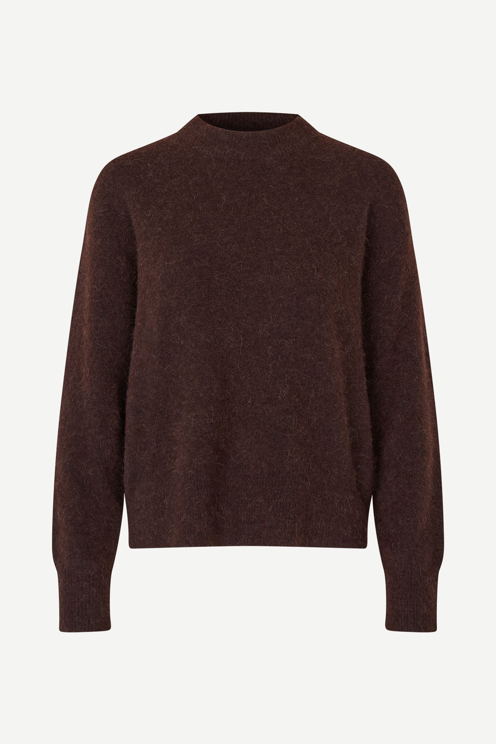 Sweater with a regular fit and dropped shoulders. Rib-knitted crewneck collar, cuffs, and hem. Main material made from an elastic blend with wool and alpaca wool.