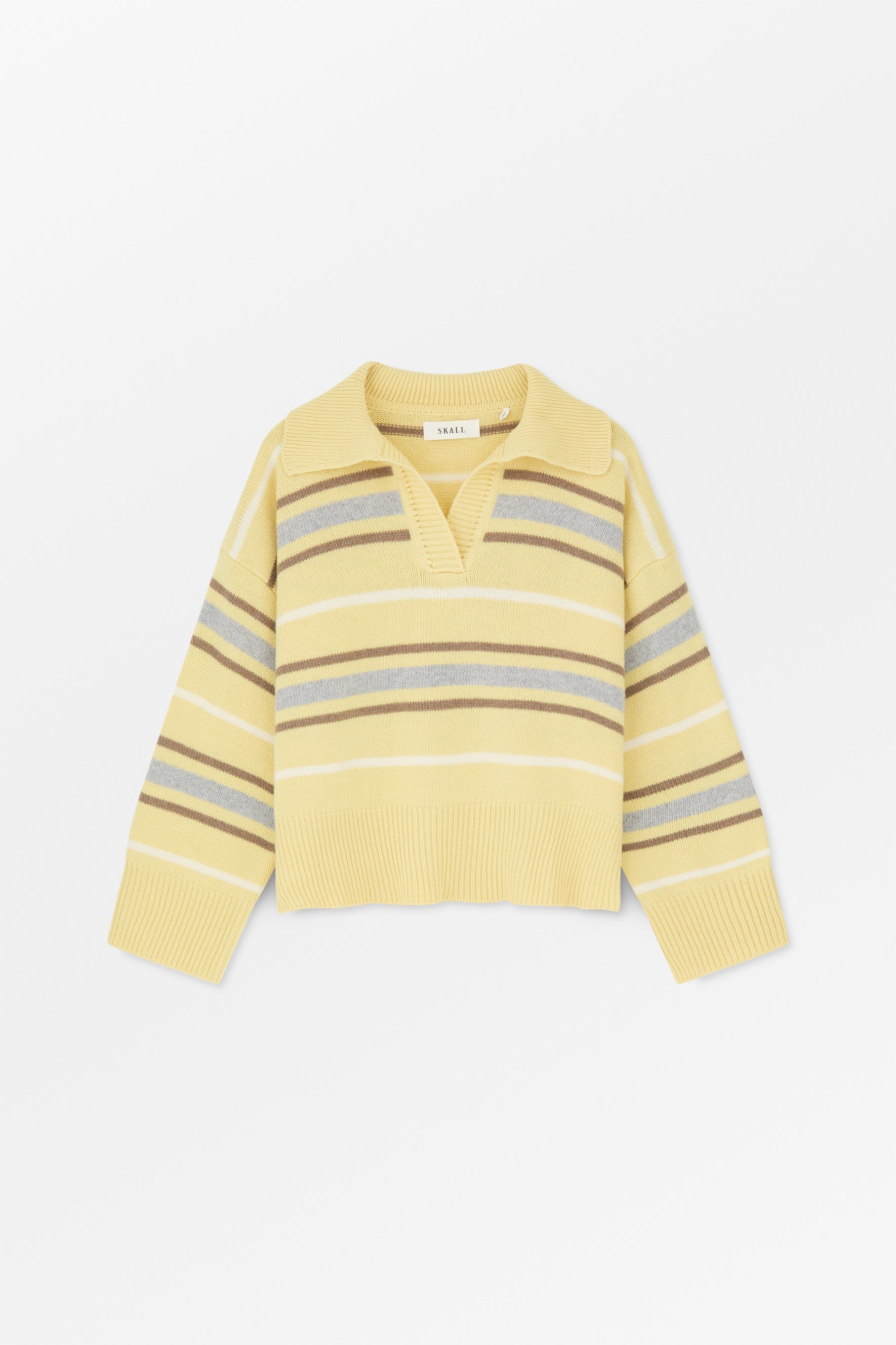 Paul V-Neck Jumper is a striped sweater in 100% merino wool with a wide, single-layer ribbed collar and a softly overlapping V-neckline. The jumper has a relaxed fit with a dropped shoulder and a raglan sleeve at the back, a subtle design detail that enhances its laid-back silhouette. Deep rib edges finish the cuffs and hem.