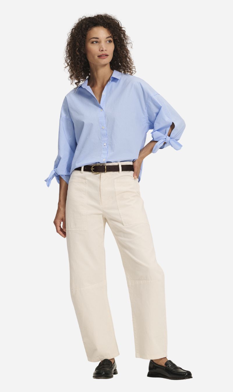Crafted from a sturdy cotton twill, this casual trouser has a modern line with a subtle, vertical seam at the knee that lends a cool curved silhouette. Utilitarian-inspired patch pockets on the front and rear.Wide leg pants