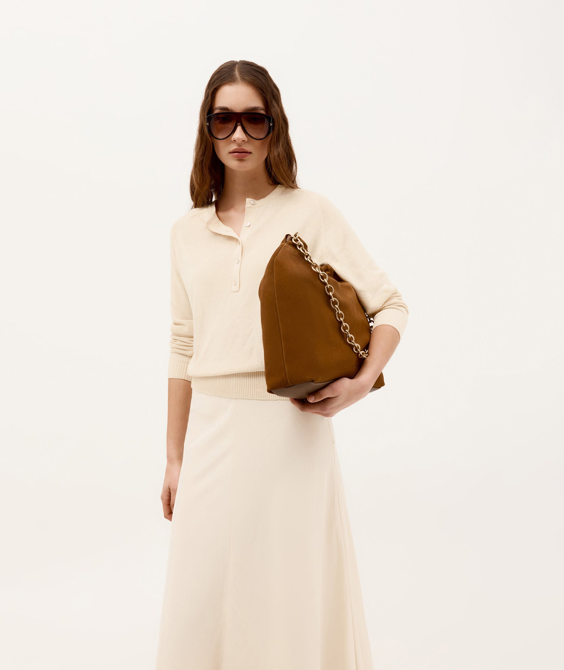 Mr Cinch is crafted from soft Calf Suede. He features a detachable chain detail that doubles as a handle, a removable chain cover, and a detachable top handle. Inside, the spacious interior includes two slip pockets and a zip pocket for seamless organisation.