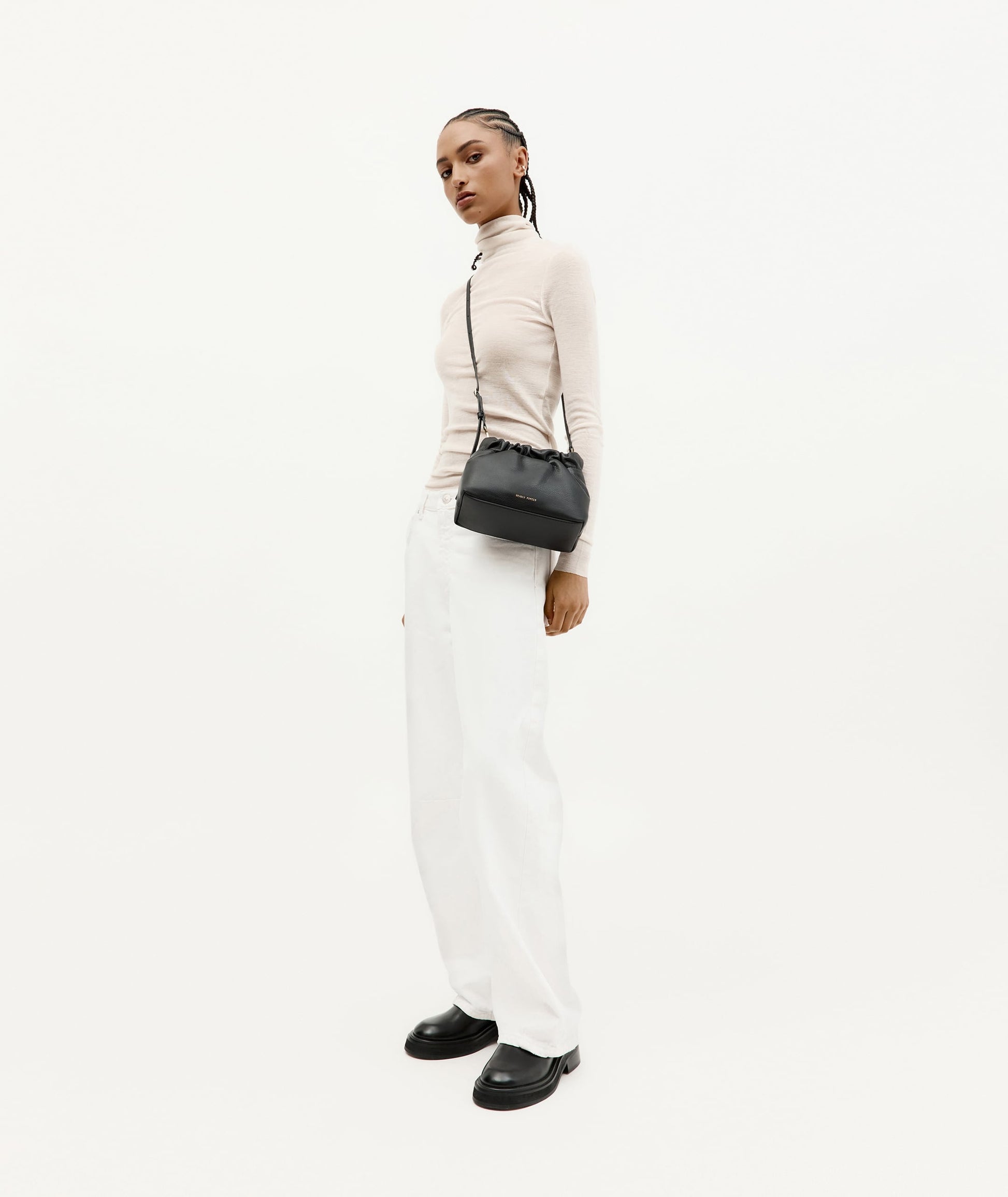 Mr Cinch Mini, the petite partner in crime, features a slightly curved shape and unique cinched detail - all lovingly handcrafted with our buttery Calf Nappa in Milk. Excluding practicality, Mr Cinch Mini houses an internal slip pocket, magnetic closure, a detachable single-top handle, and a detachable, adjustable leather strap.