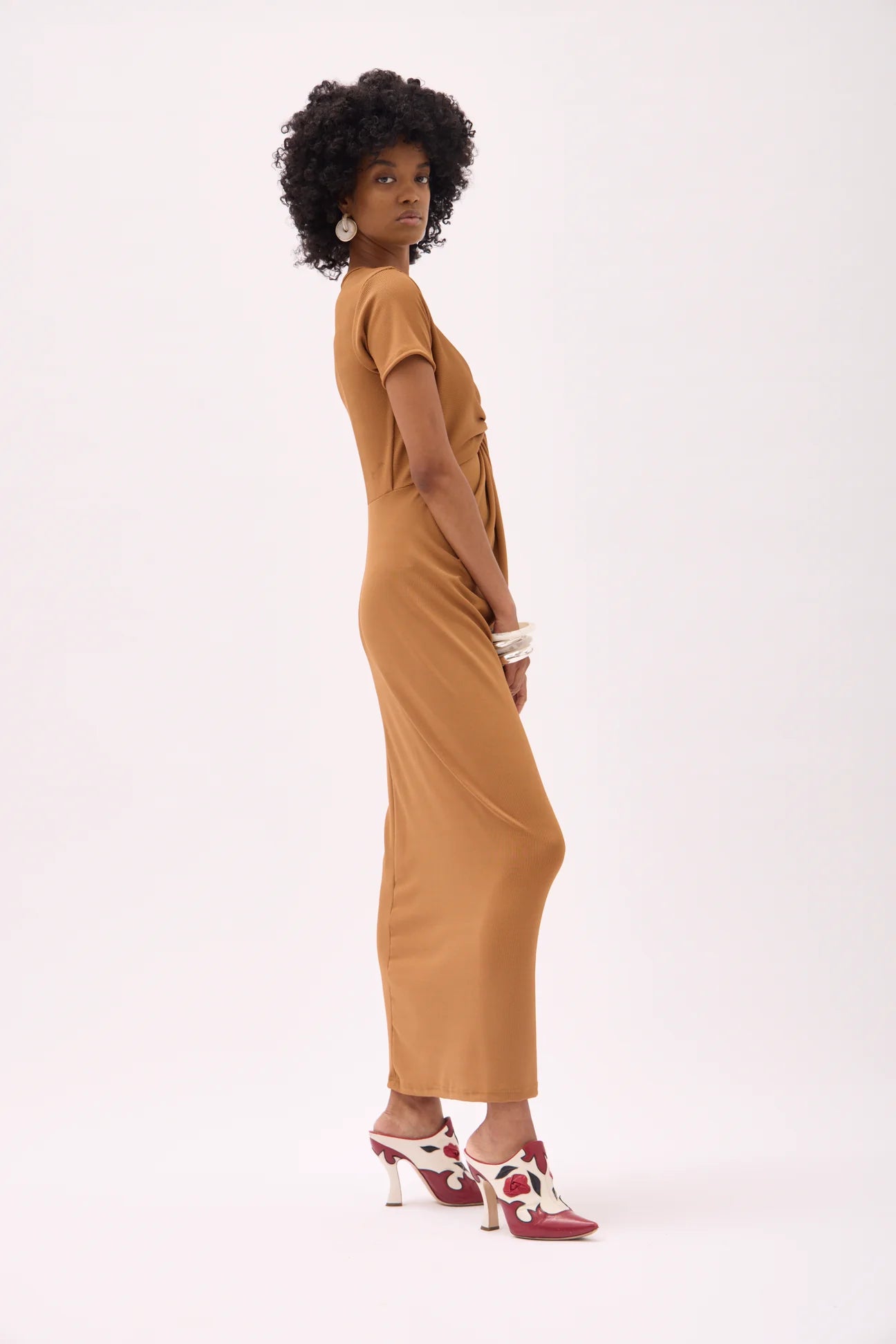 Style Archy Twisted T-Shirt dress , Fitted Maxi is suitable for all body shapes to create your own look from casual to weekend vibe. this garment has stretch to support the body when wearing.
