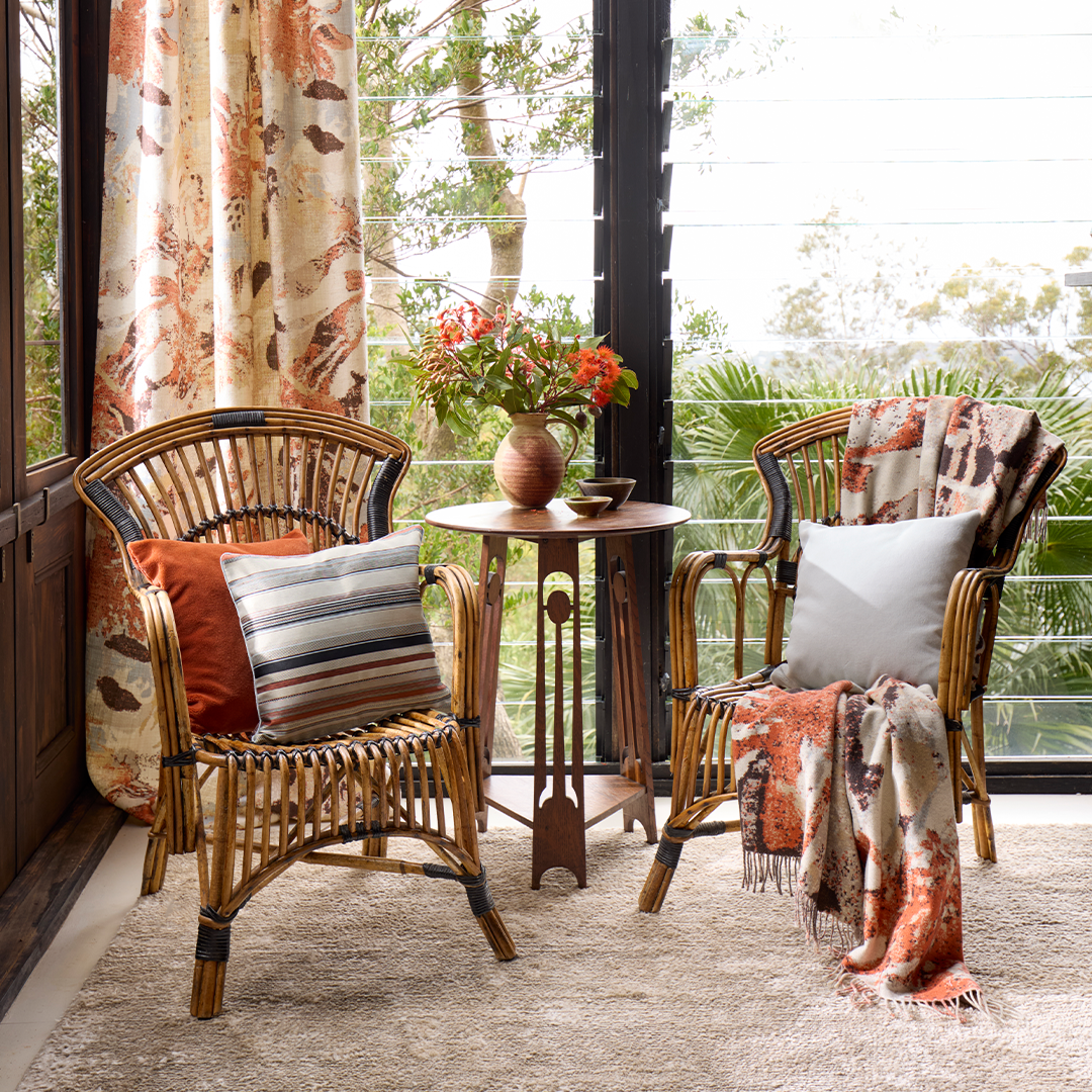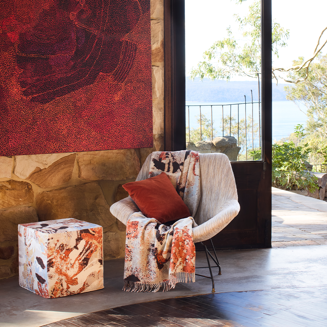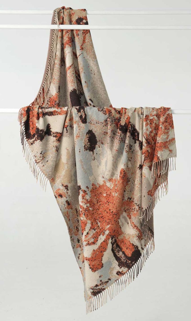 Telopea is the scientific name for the Waratah, that iconic flower of the Australian bush. Elusive no more, our Telopea throw celebrates the Waratah in a big, luminous print on pure wool, finished with a flourish of self-fringing.