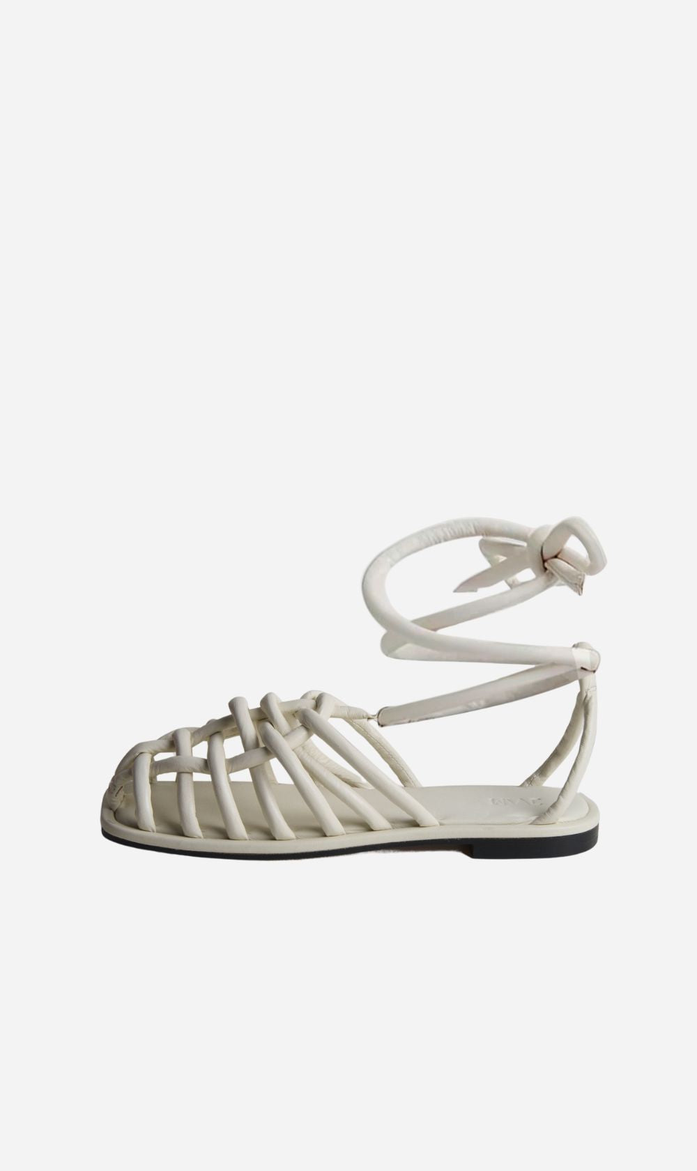 Fishman sandal re-imagined. Crafted from soft sheepskin, this ankle tie style combines tubular weave detailing with a padded footbed for ultimate comfort.