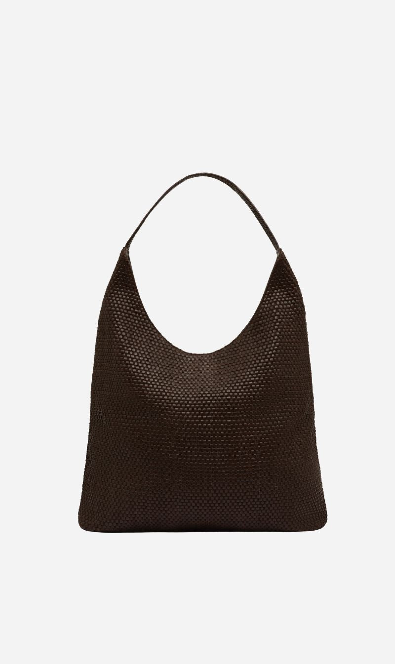 Lattice Weave Large Tote plays on exaggerated shapes and organic forms, offering a relaxed structure and oversized silhouette. An internal zip pocket provides secure storage, while the spacious design ensures high-rotation wear. Pair with minimalist wardrobe heroes for a refined interplay between the exaggerated and the understated.