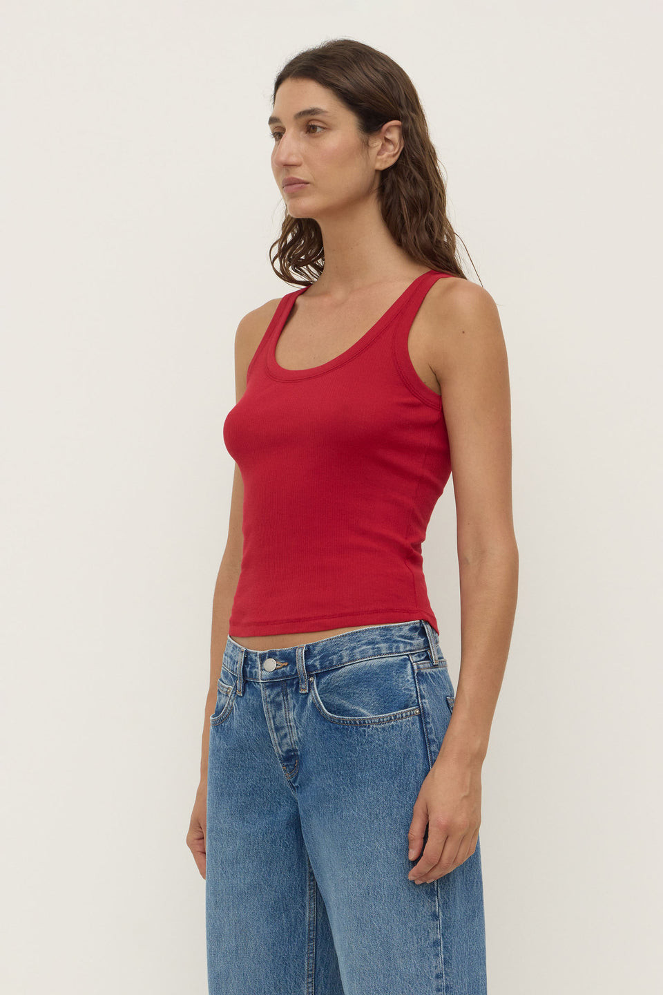 The Zali Tank by Assembly Label in Mulberry is a fitted, ribbed cotton tank designed for effortless layering. Made from 100% cotton, it offers a close-to-body fit with a scoop neckline and ribbed trims for a flattering silhouette. Our model is 177 cm tall with a 61 cm waist and is wearing a size 8 / S / 26.