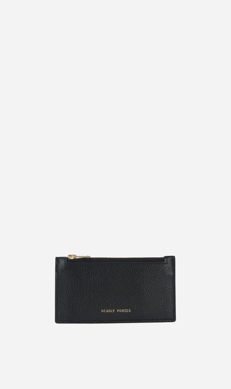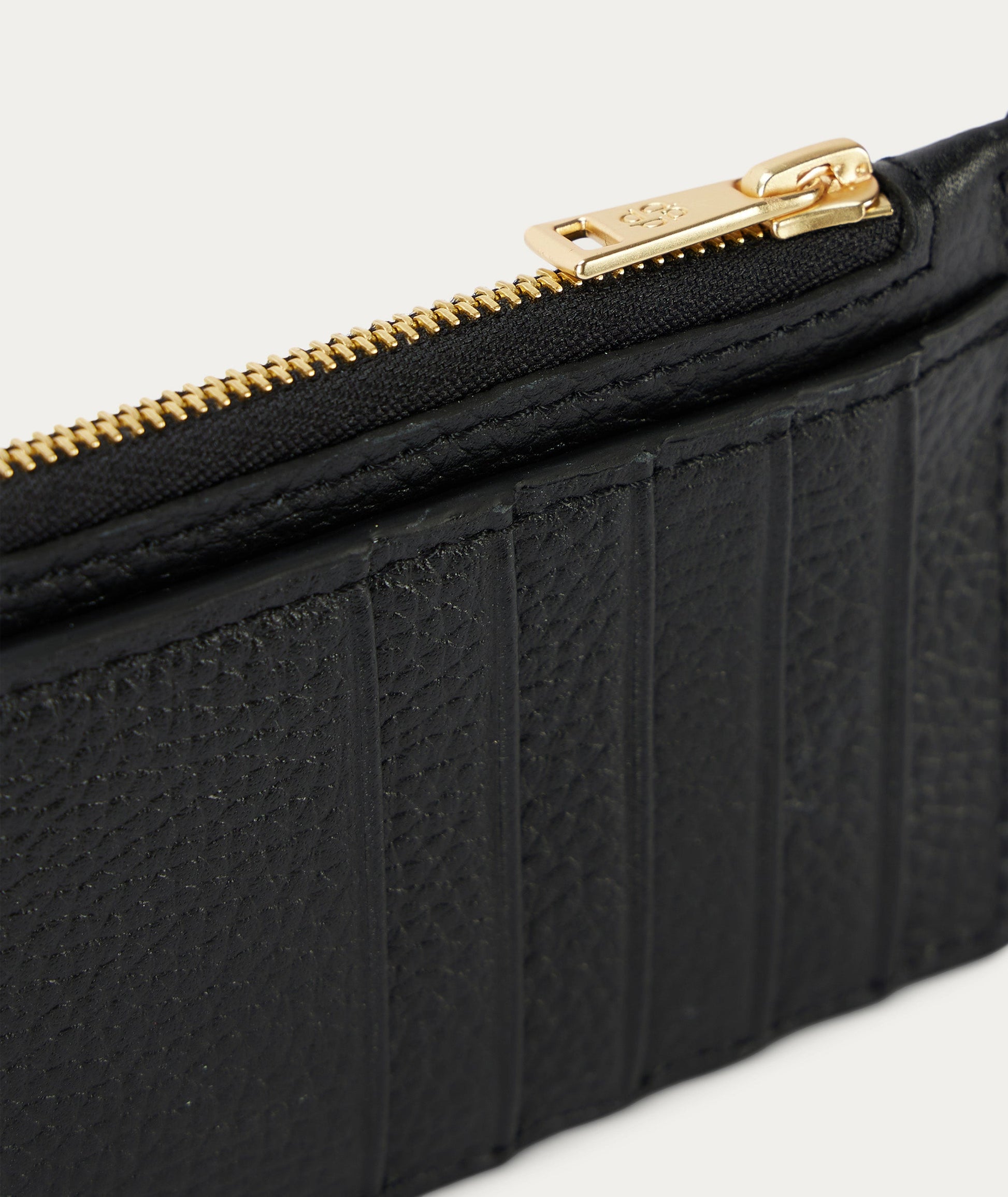 Crafted in Ironed Calf Nappa with brass hardware, Card Holder in Black features a streamlined longline shape with five card compartments and a secure zip pocket for everyday ease.
