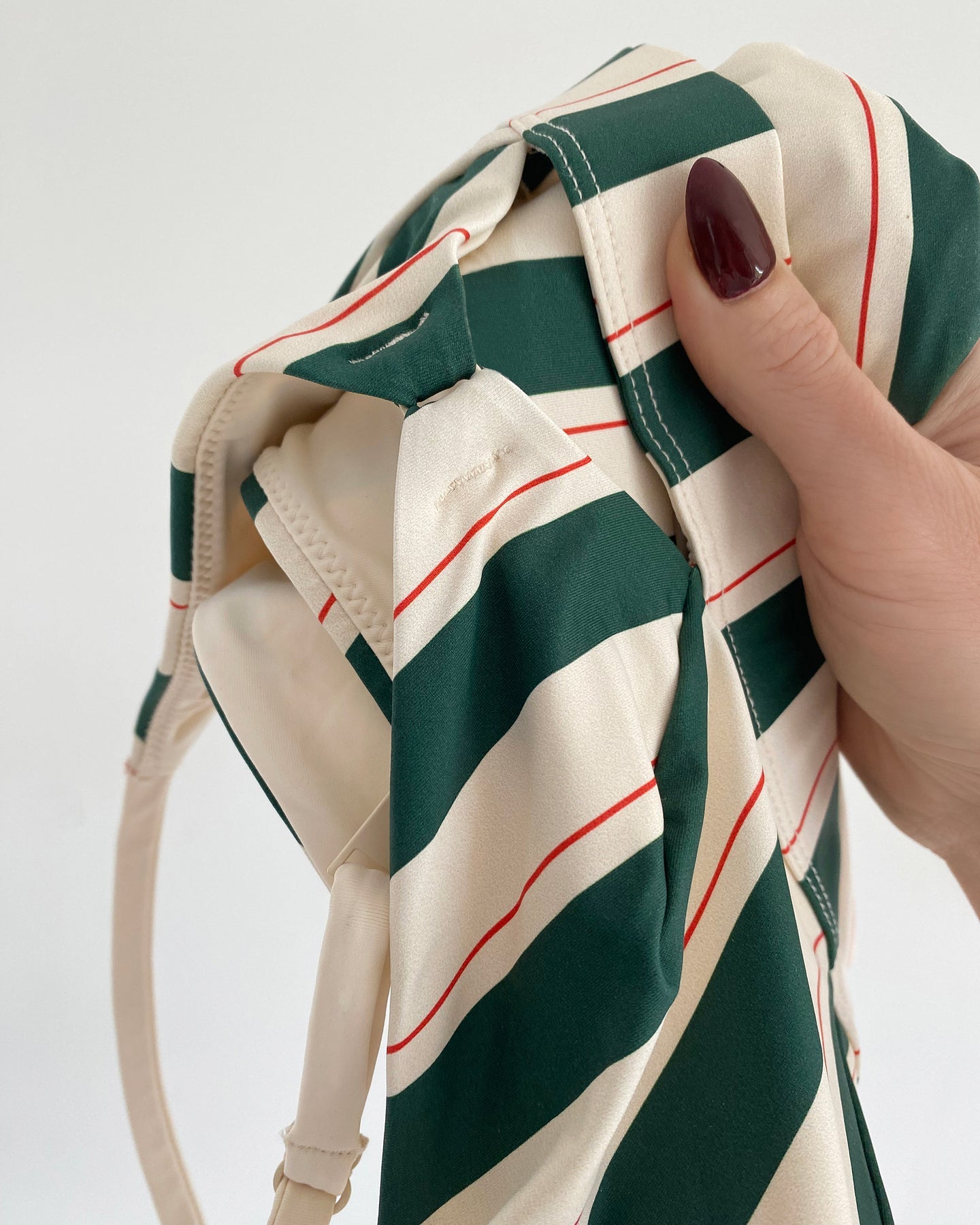 The cut-out swim bralette offers a medium coverage flattering fit with centre detailing feature, crafted with seamless finishings and custom hardware. Dear Dylan signature elasticated underband and side boning offers shape and support, a comfortable easy-to-wear style. Fully lined in the same fabrication. Pair with any of the Dear Dylan swim bottoms in the same colourway