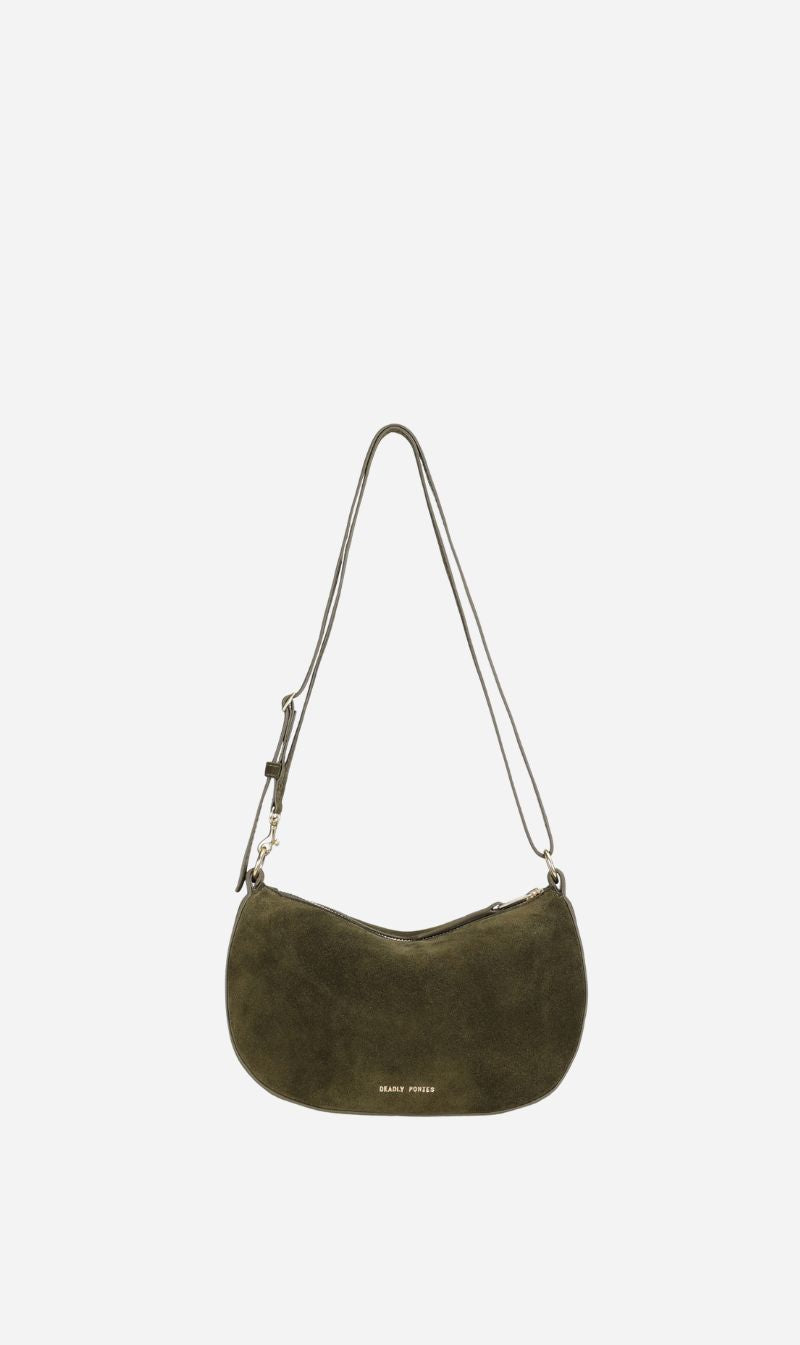 Petite in stature, Mr Sling Micro in Kale is crafted from soft Calf Suede. With a detachable top handle and adjustable strap, he offers versatile styling, while internal pockets and a brass zip closure keep essentials secure.