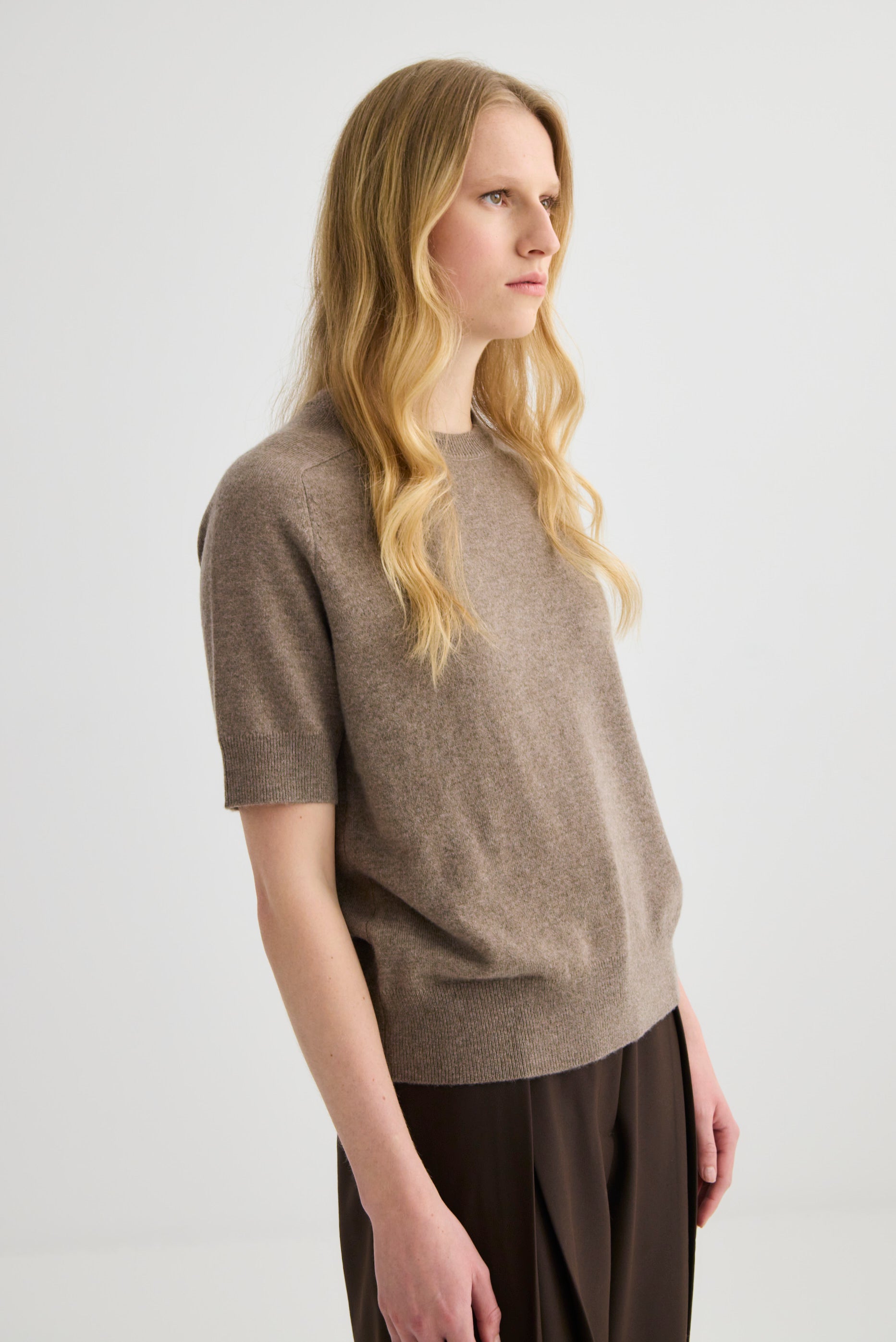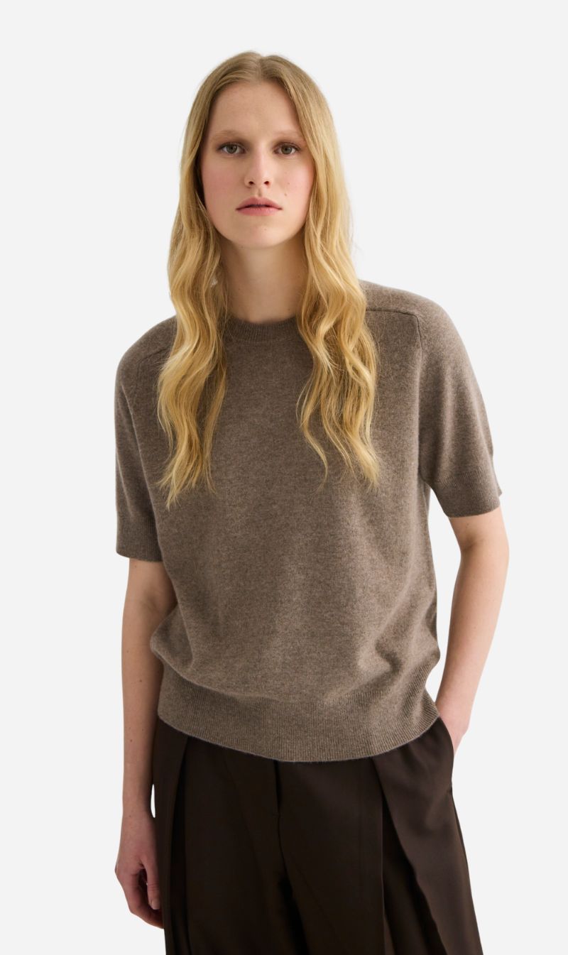 The Laing Jasper Short Sleeve Crewneck in Cocoa Marle is a refined everyday style crafted from A-Grade Mongolian cashmere, knitted in a fine 12-gauge for softness and durability.