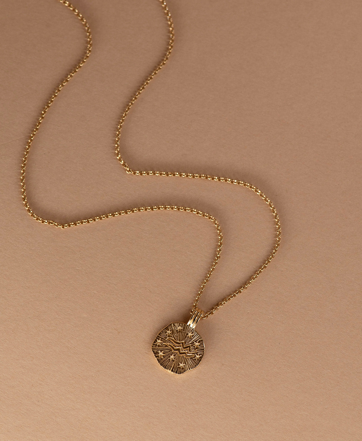 Uranus fuels the Aquarius's inventive spirit and thirst for change. Our Sun in Aquarius Necklace is a celebration of their fearless originality, featuring a beautiful organic shaped pendant suspended from a fine gold vermeil belcher chain.