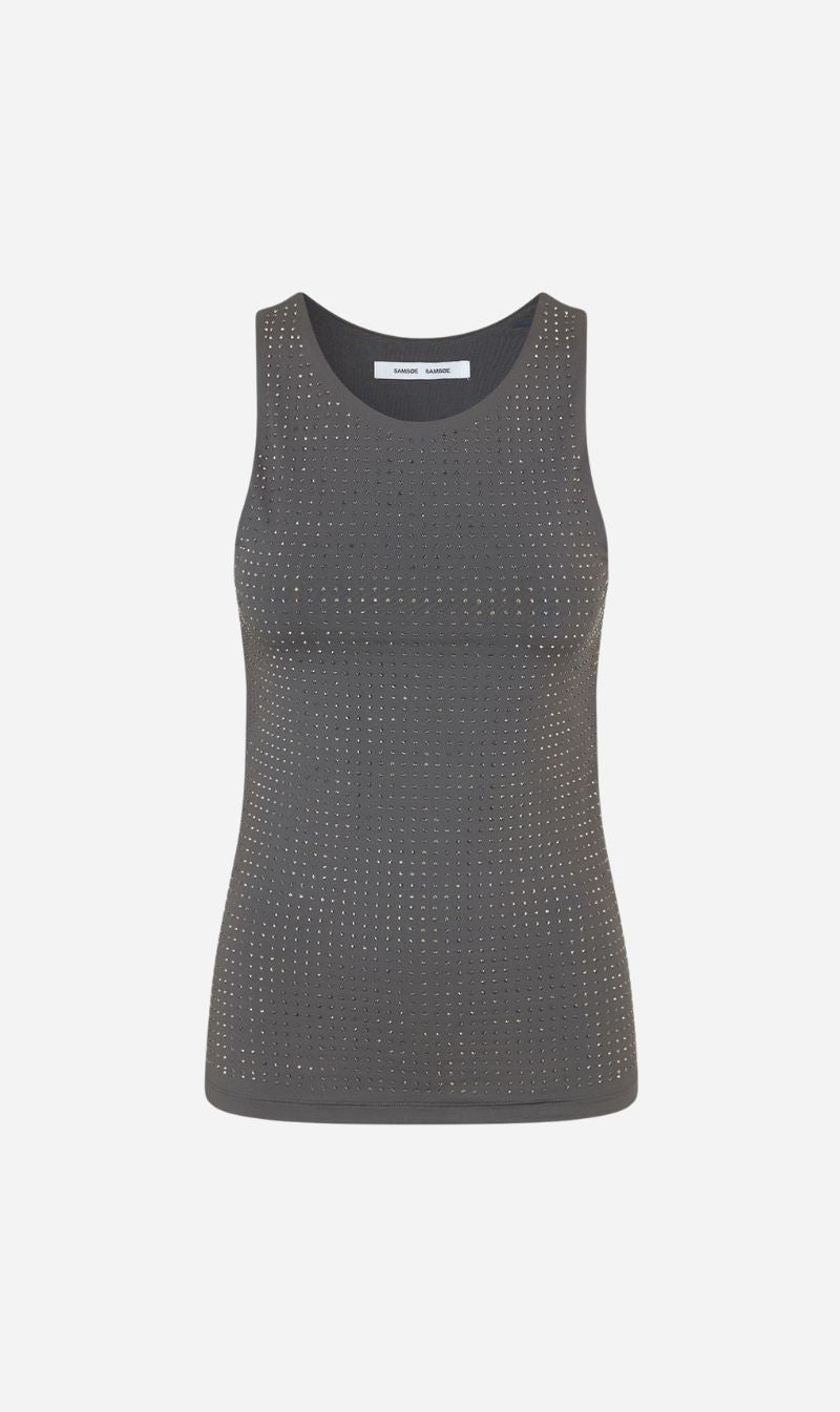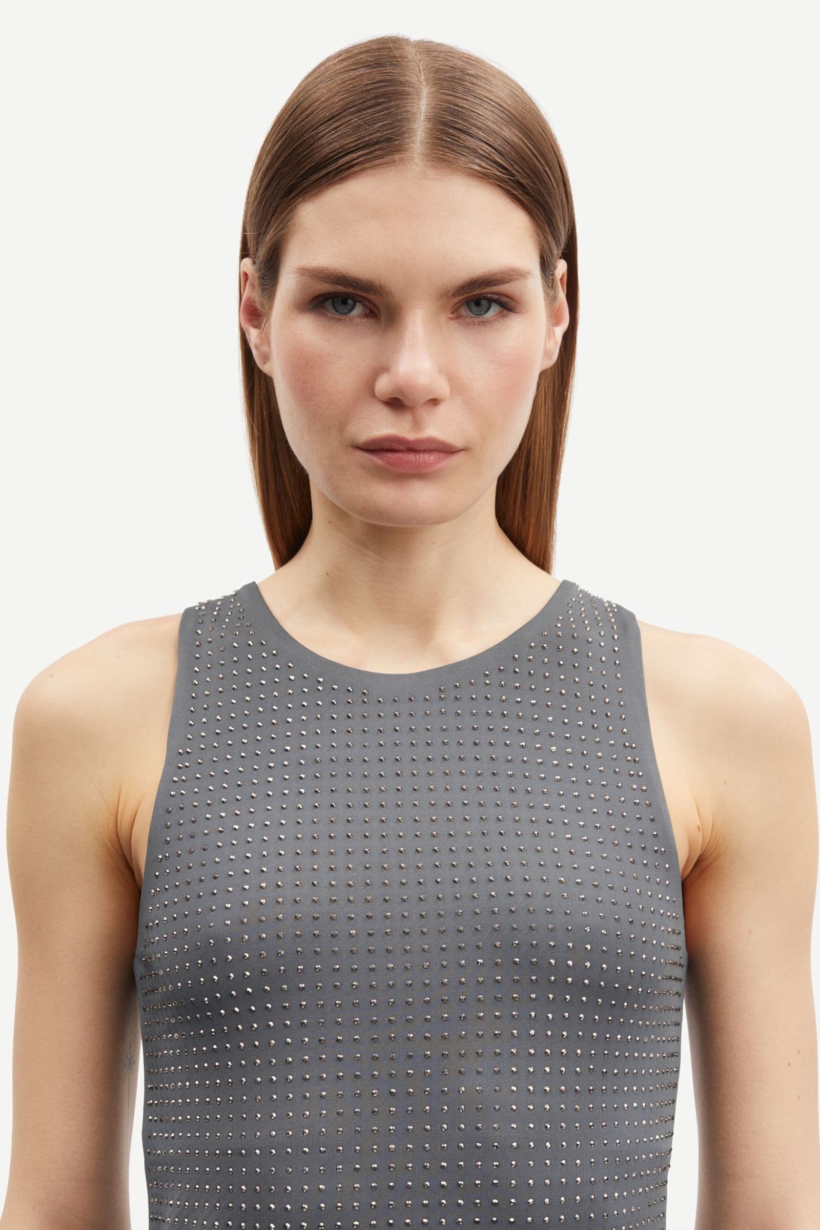 Jersey tank top with a slim fit. Covered in crystals all-over. Round neck. Main material made from an elastic blend including recycled polyester.