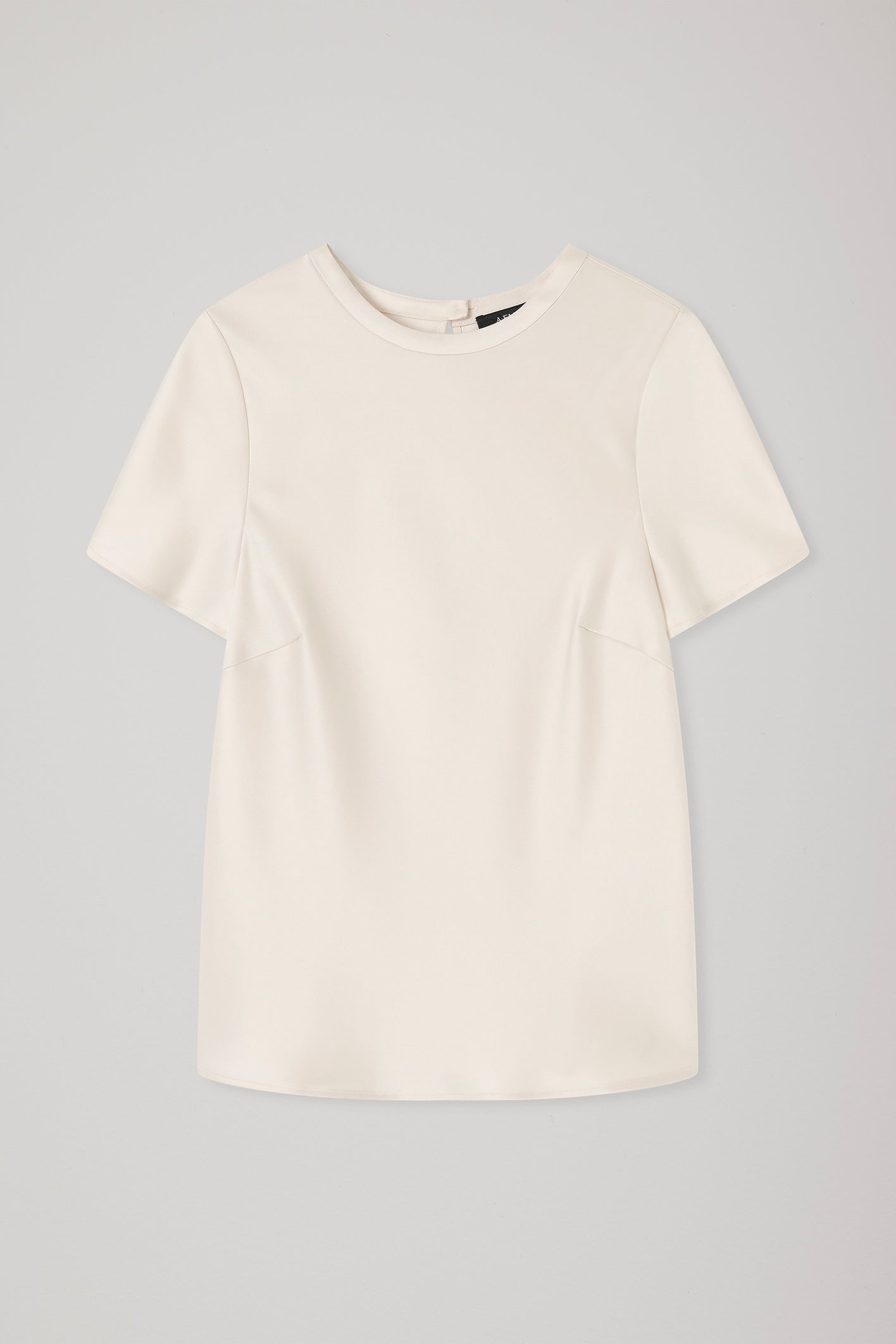 Crafted from premium Japanese triacetate, the Arca top is an elevated T-shirt style with a short sleeve, button closure at the back of the neck, and cut on the bias for a universally flattering fit.