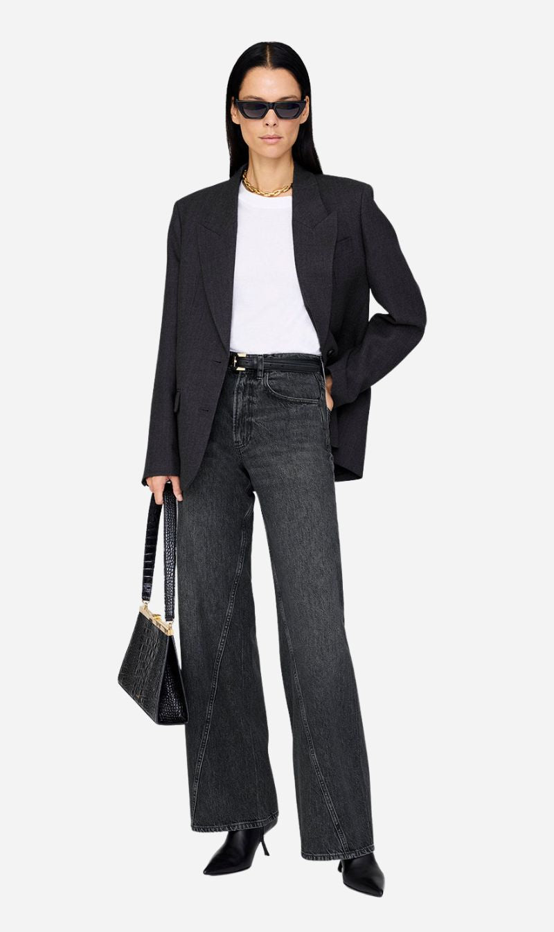The Brie Jean features a relaxed silhouette constructed from light-to-midweight rigid cotton denim without stretch featuring a soft hand and slight drape in a dark wash with subtle veining throughout.