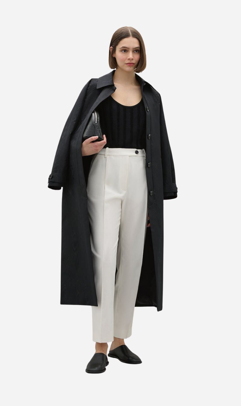Crafted from a premium cotton twill, the Emmett Pant features a belted waistband, side seam pockets and a pintuck through front and back leg, tapering at the ankle for a universally flattering fit.