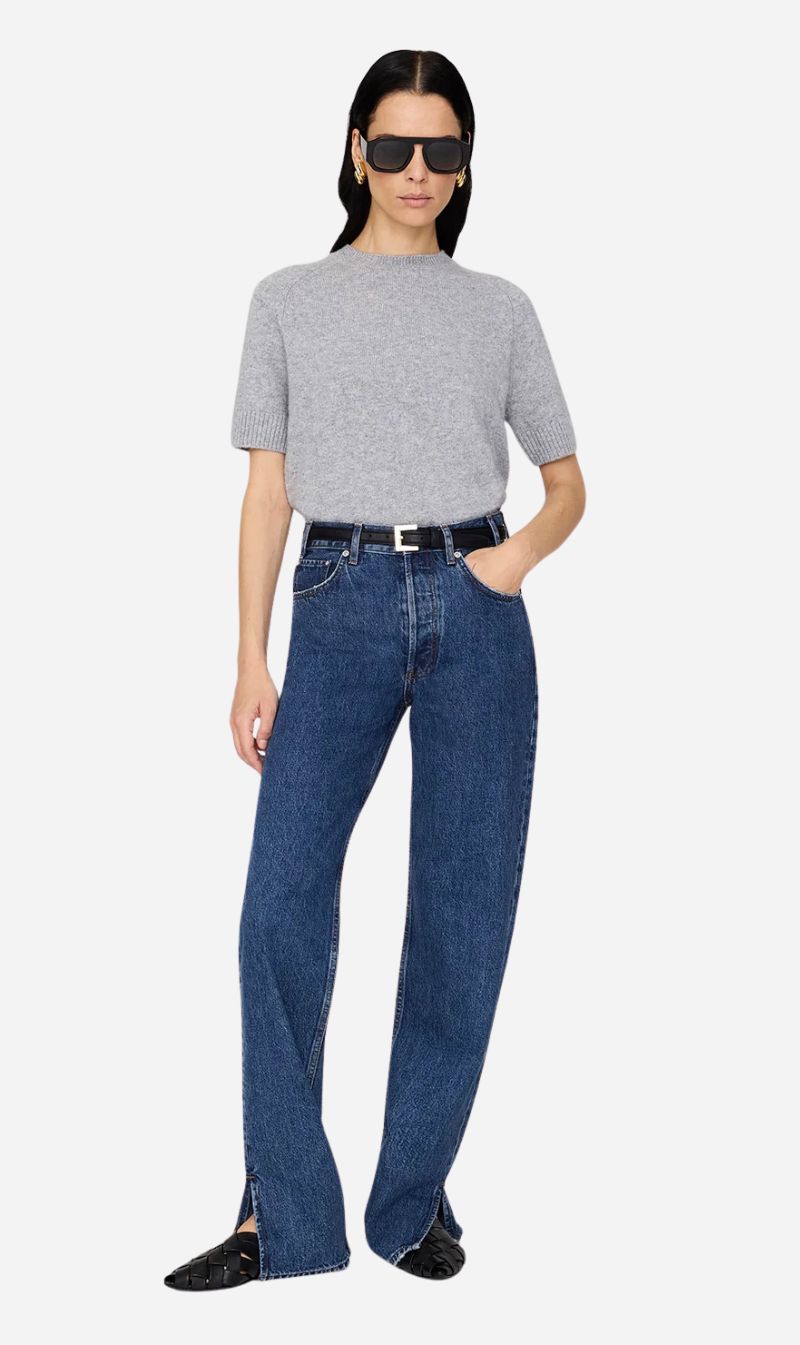 The Jackson Sweater is a soft knit layer crafted in midweight, ultra-soft 100% cashmere in heather grey.
